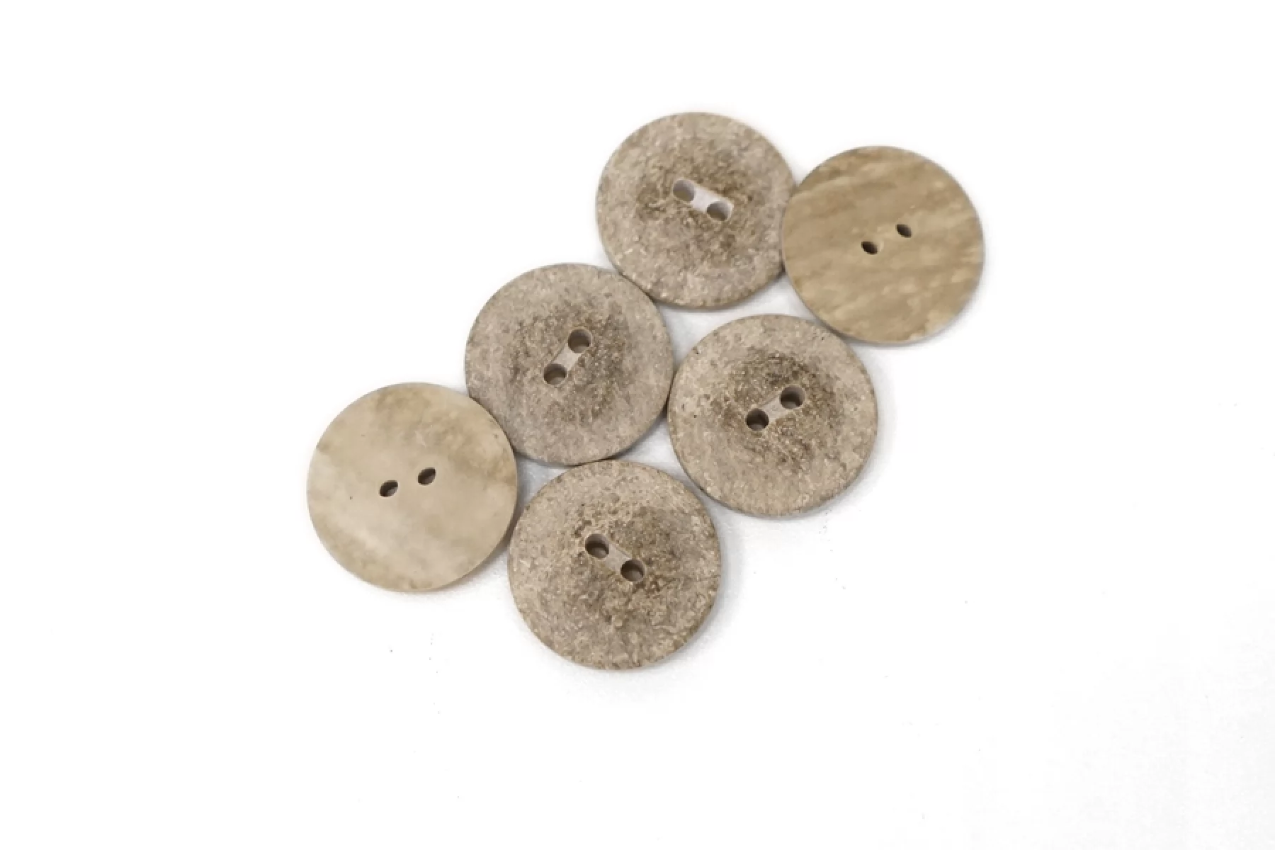 Пуговица пластикавая костюмно-пальтовая серо-бежевого цвета . Размер 22 мм.