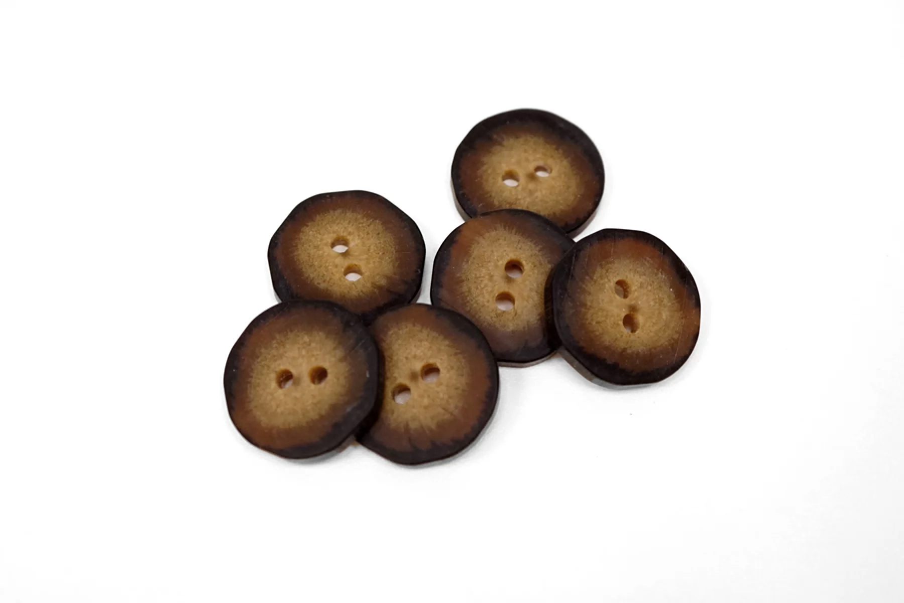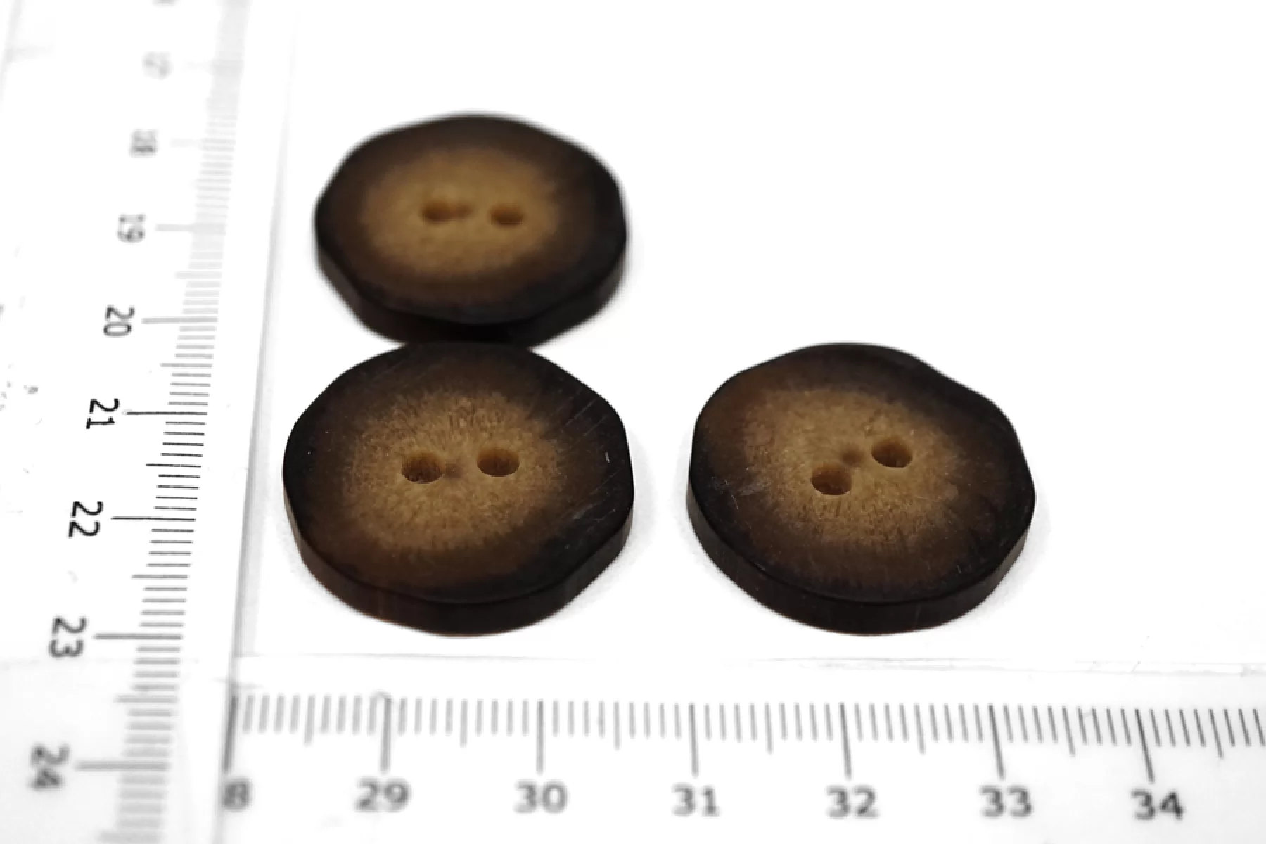 Пуговица пластикавая костюмно-пальтовая коричневого цвета под рог . Размер 25 мм.