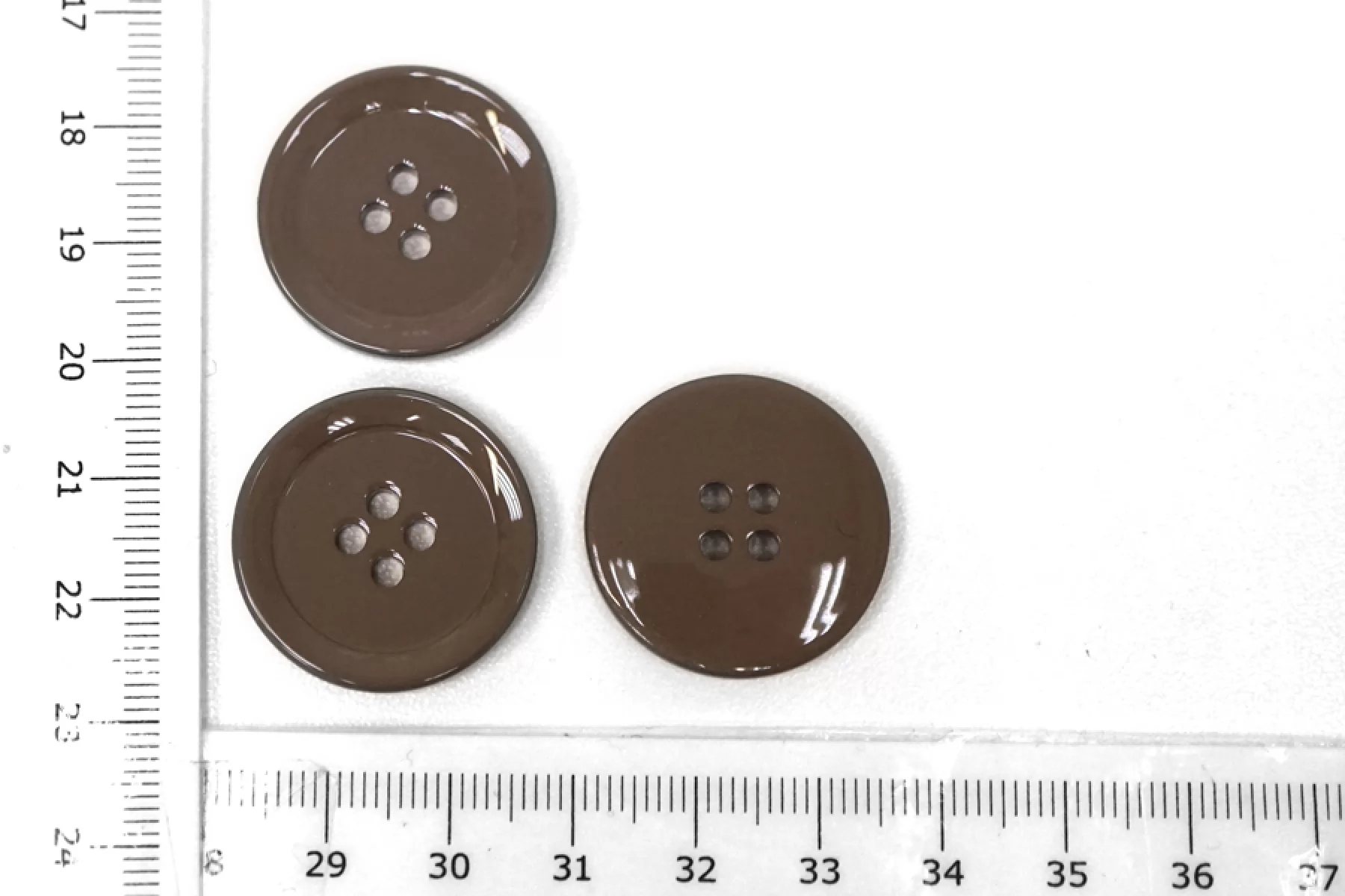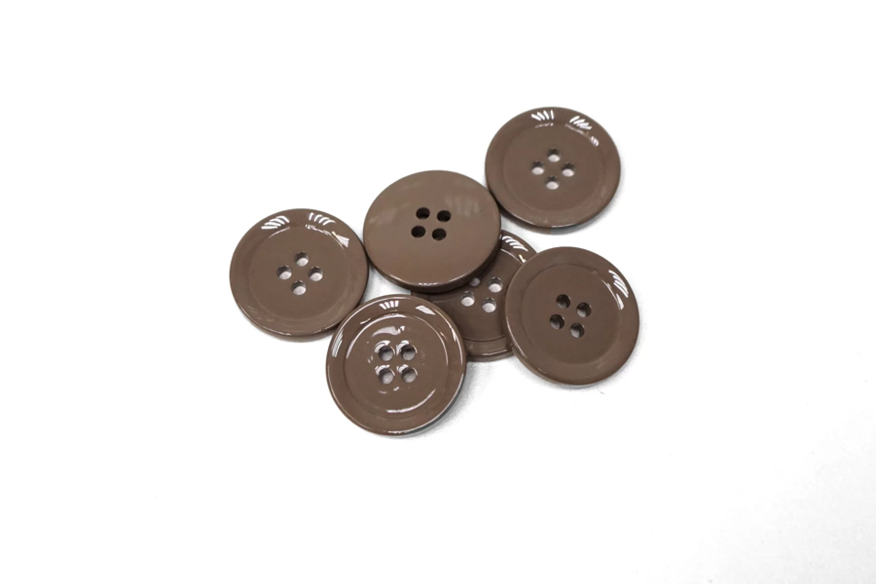 Пуговица пластикавая костюмно-пальтовая глянцевая серо-коричневого цвета . Размер 25 мм.