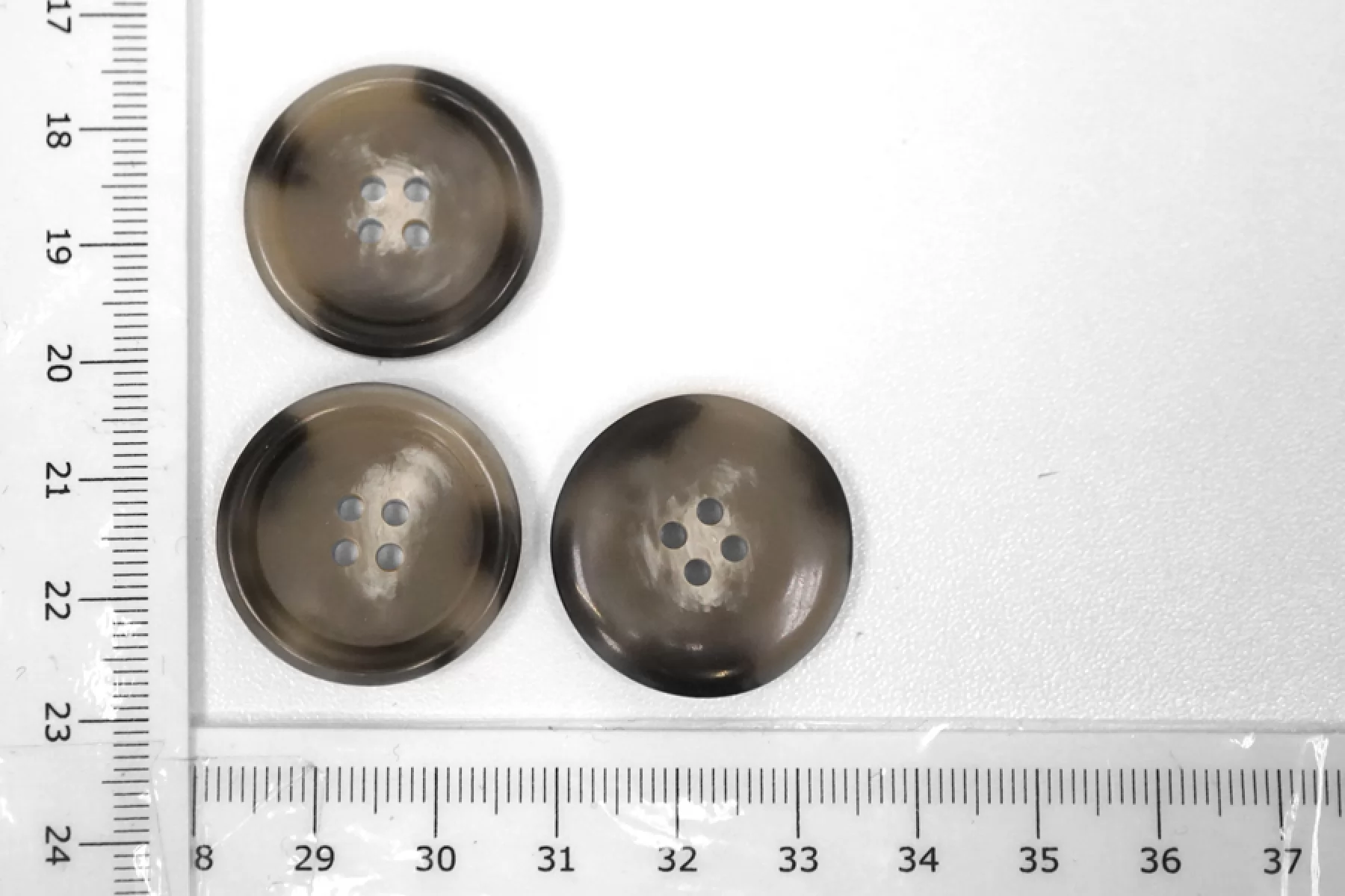 Пуговица пластикавая костюмно-пальтовая серого цвета под рог . Размер 25 мм.