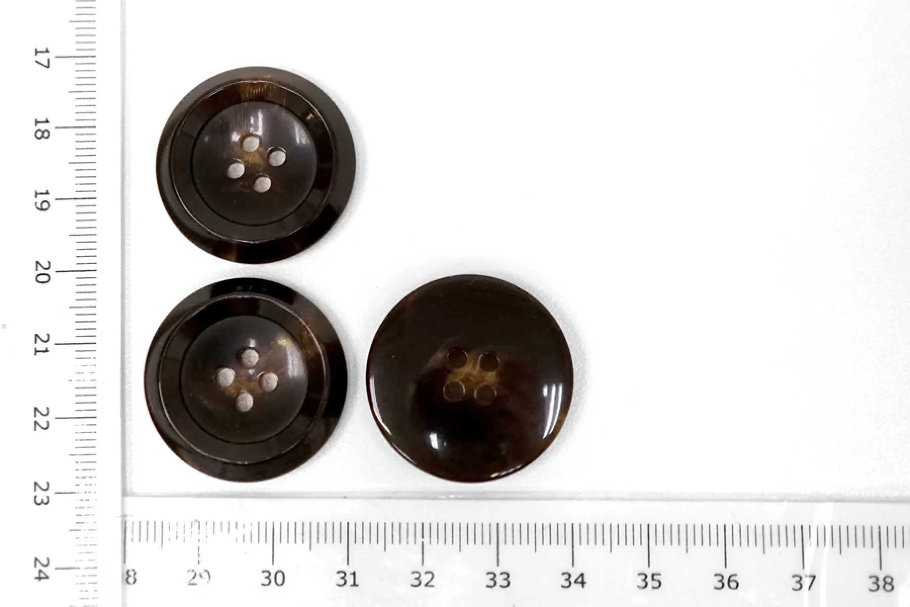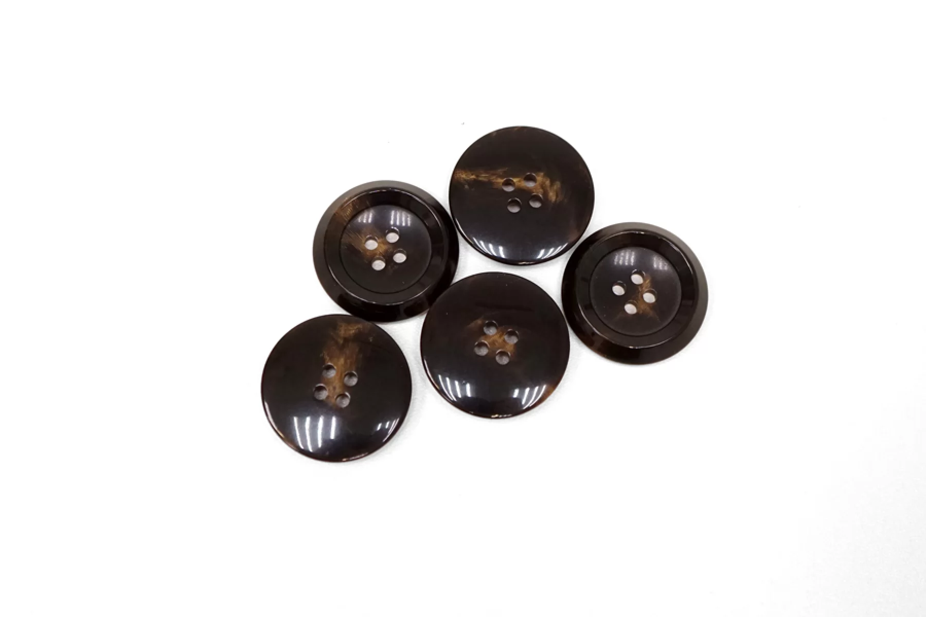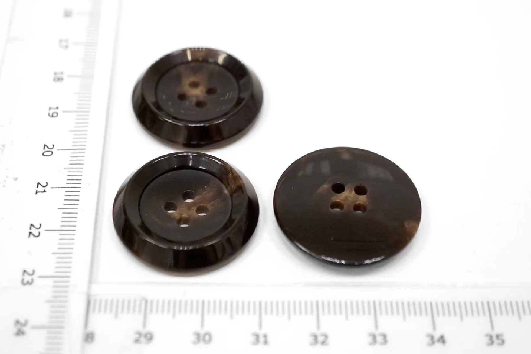 Пуговица пластикавая костюмно-пальтовая коричневого цвета под рог . Размер 28 мм.
