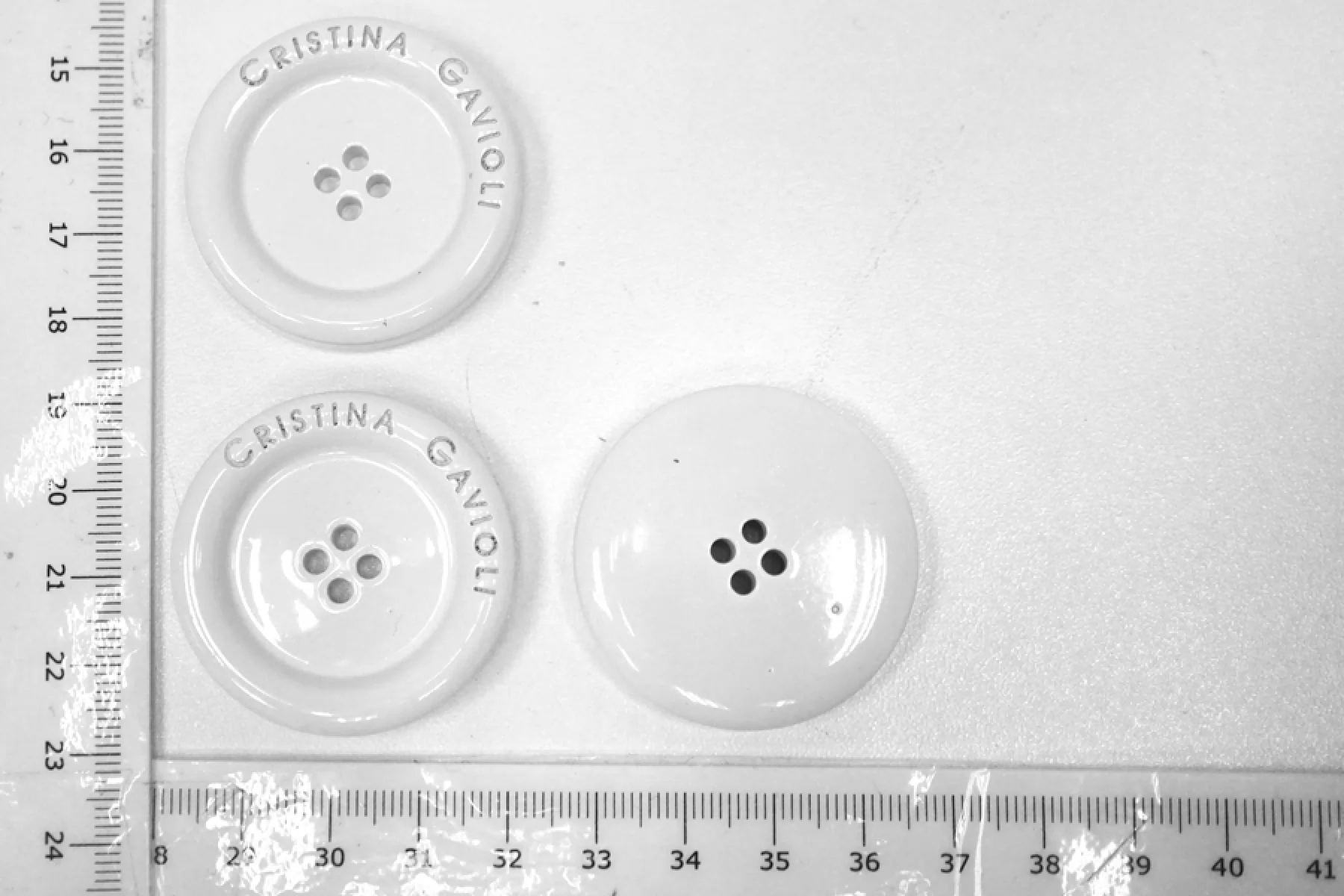Пуговица пластикавая костюмно-пальтовая Белого цвета . Размер 38 мм.
