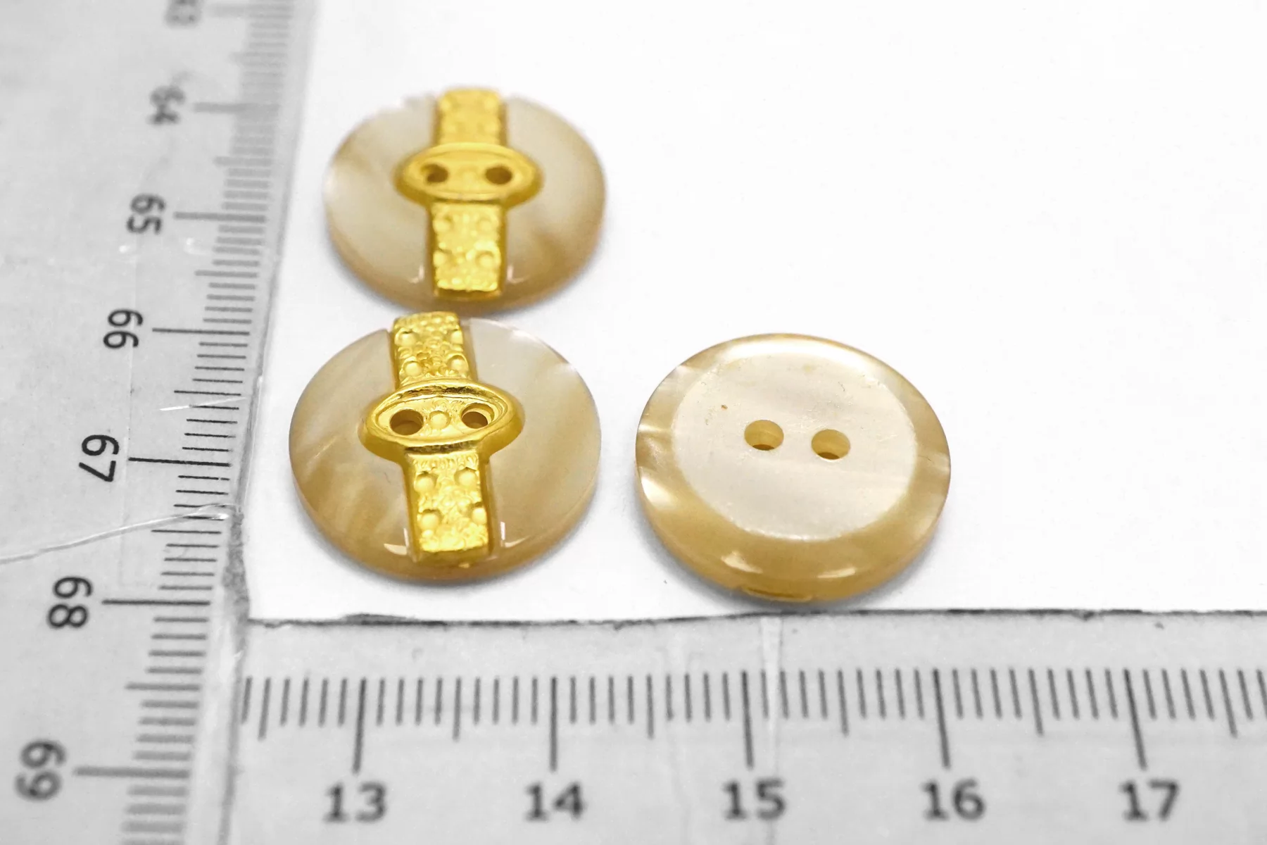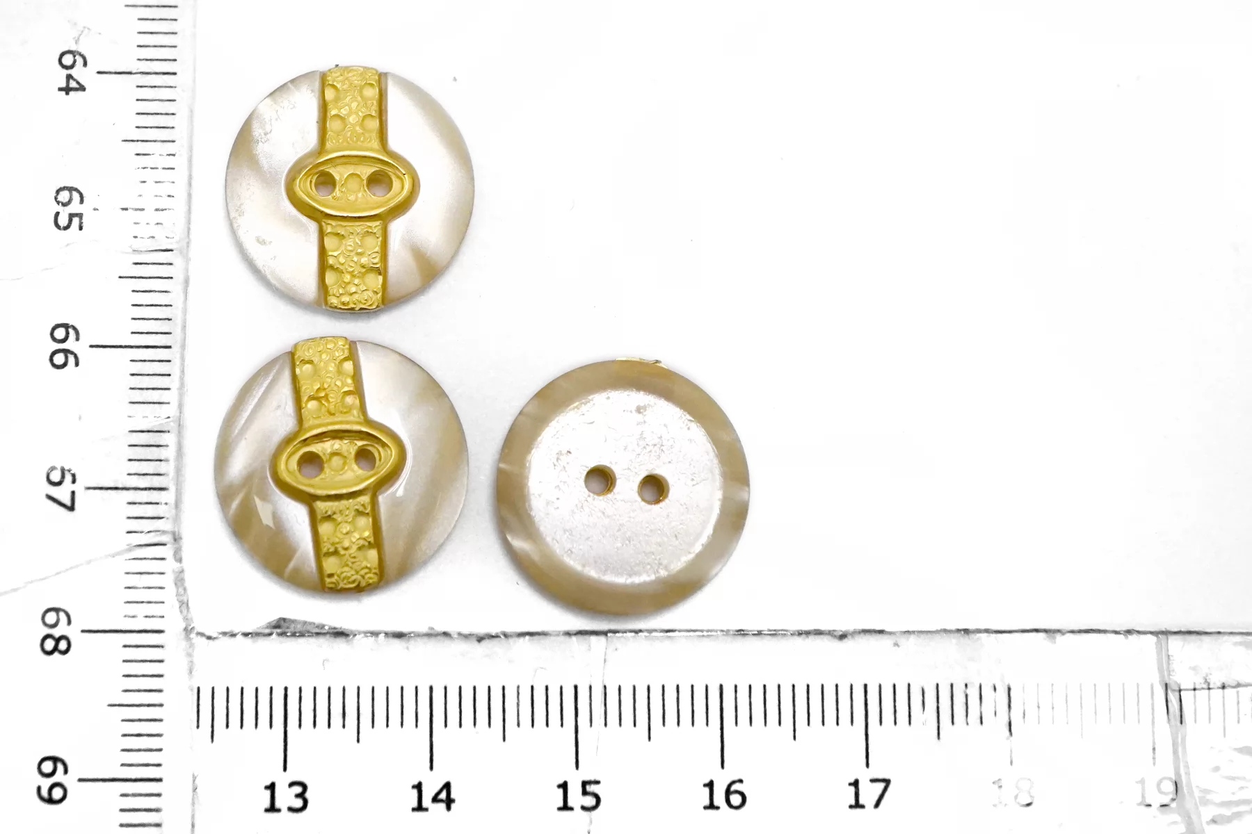 Пуговица пластиковая Бежевая с золотой вставкой 18 мм (К-3) 27112547
