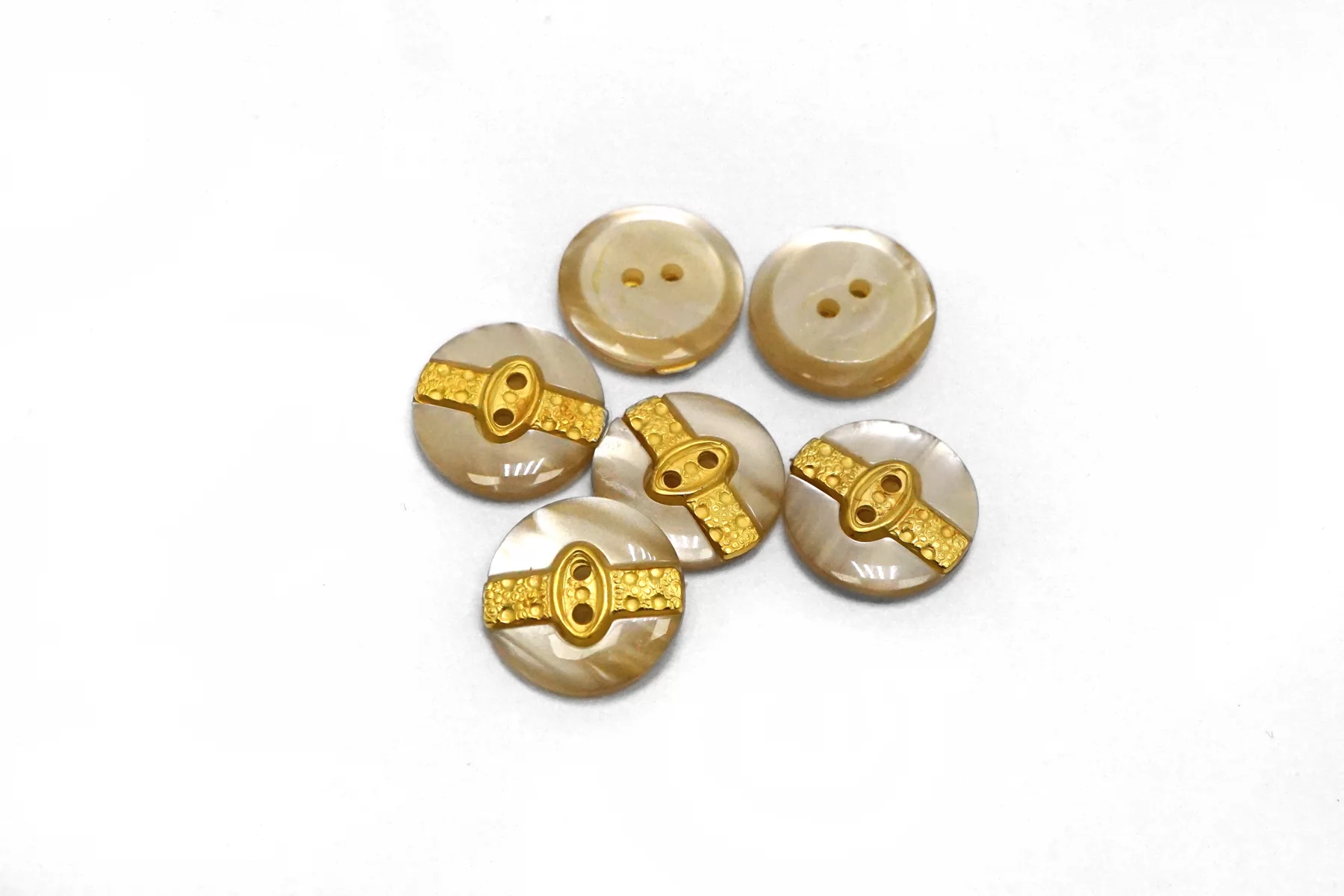 Пуговица пластиковая , перламутровая ,бежевого цвета с золотой вставкой , размер 18 мм.
