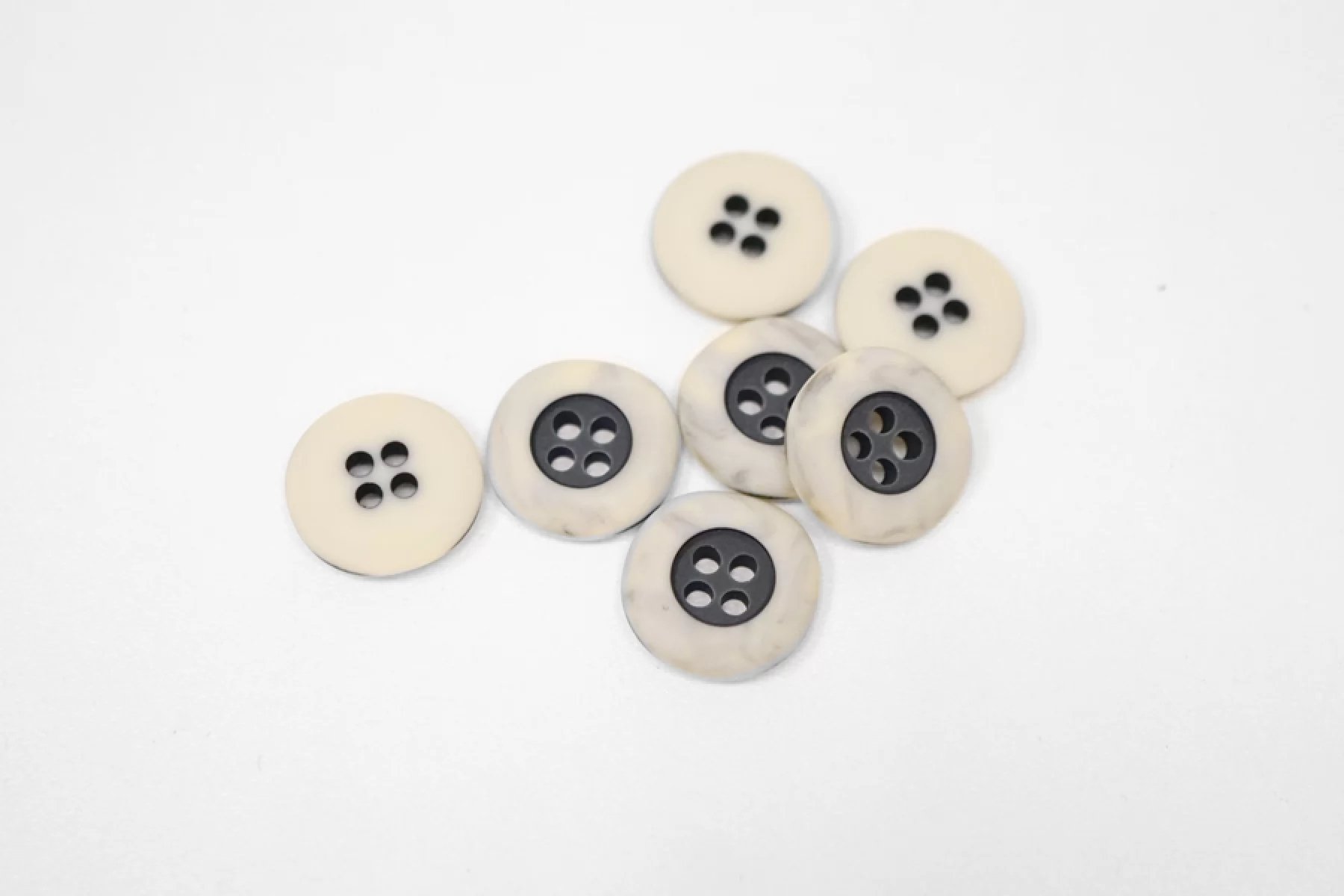 Пуговица молочного цвета с черной серединой пластиковая , размер 18 мм.