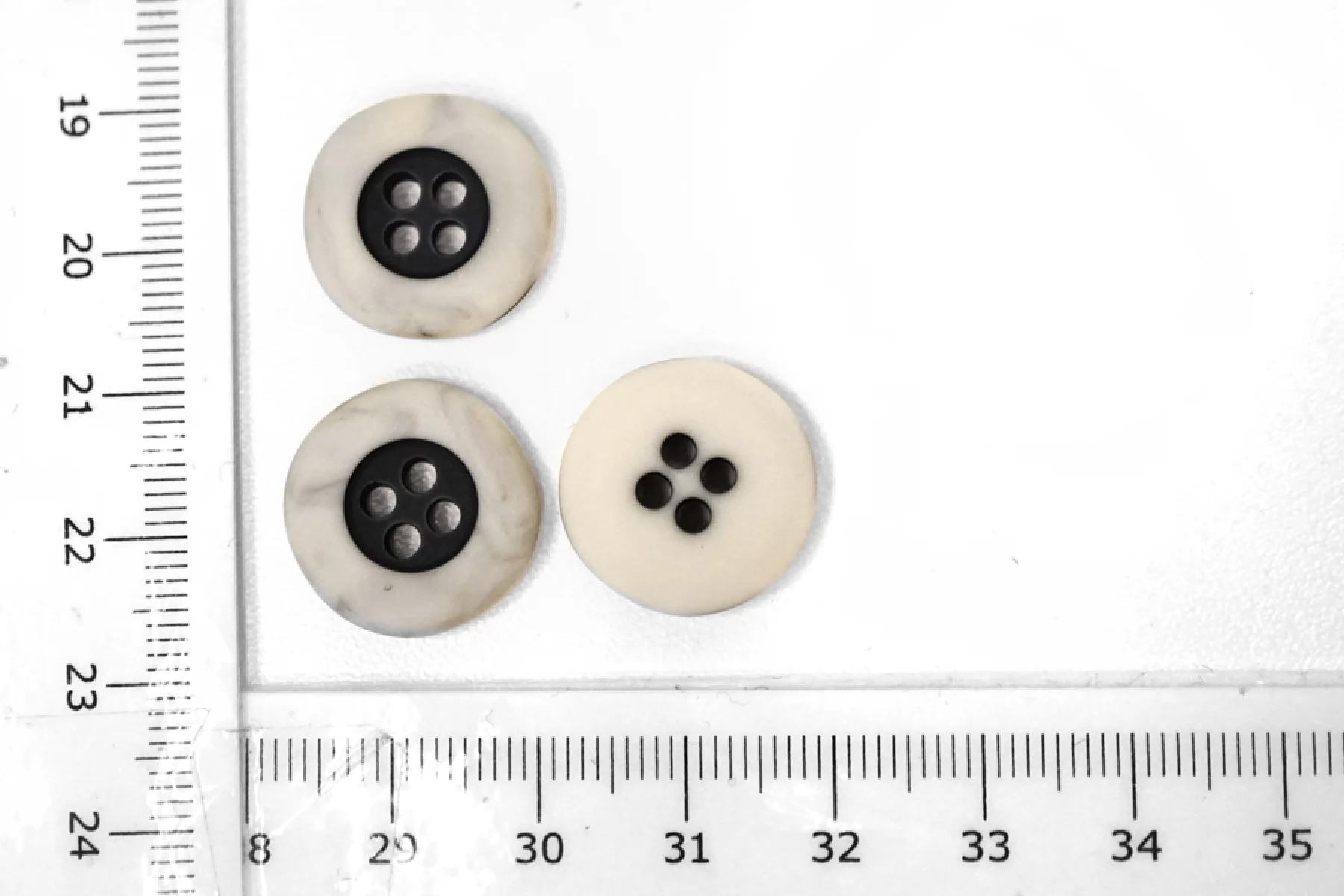 Пуговица пластиковая молочная с черной серединой 18 мм Е1 20122411