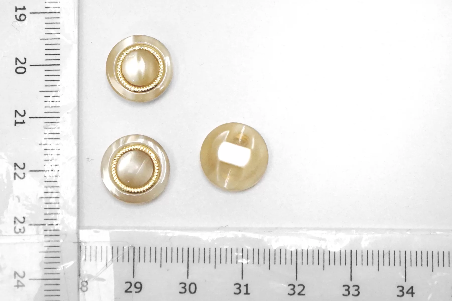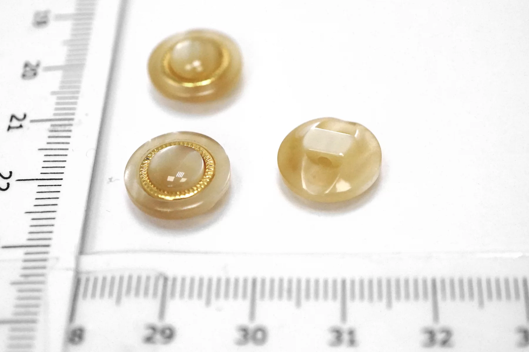 Пуговица пластиковая на ножке бежевая с золотой вставкой 12 мм (S-3) 26112552