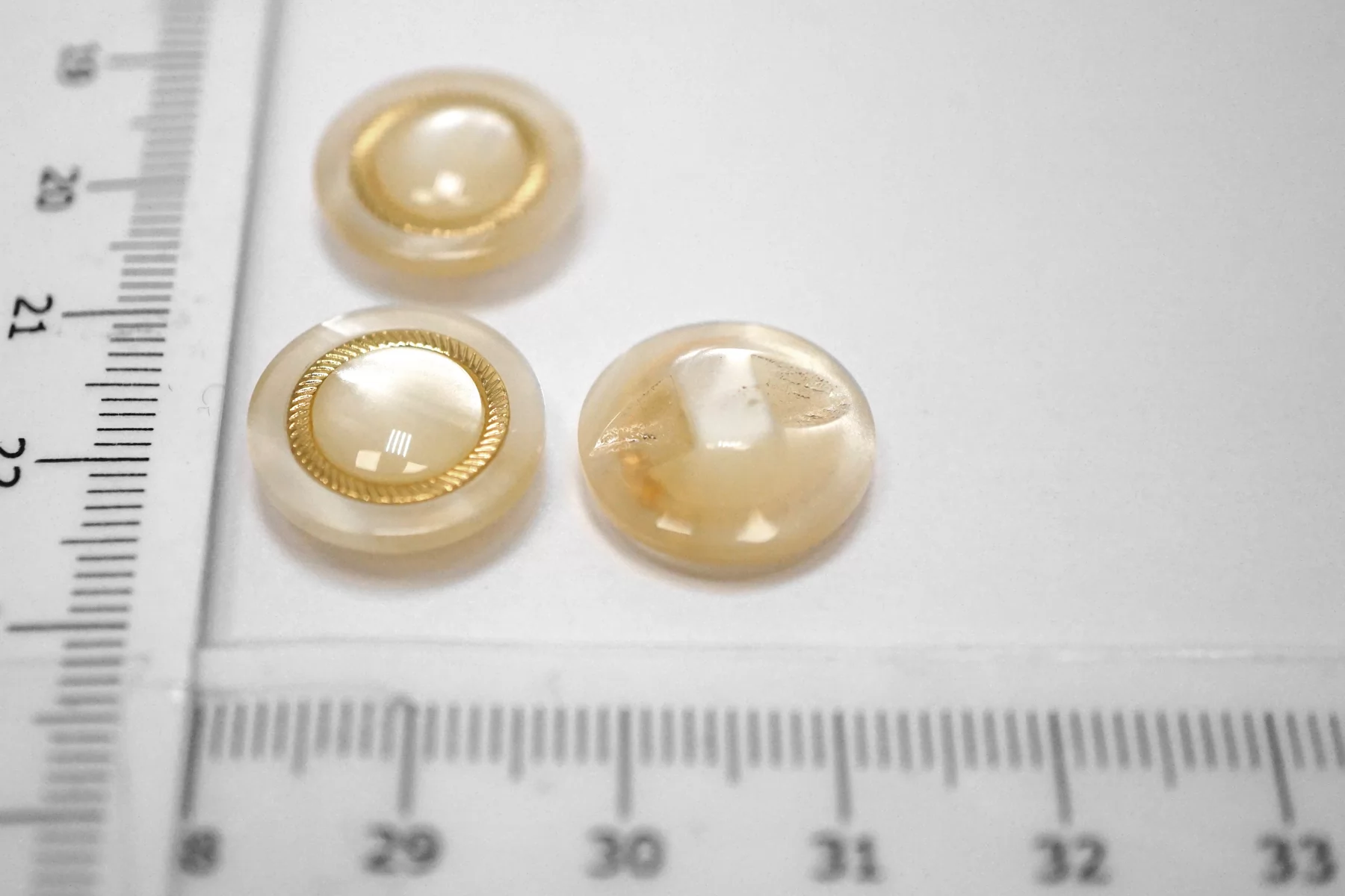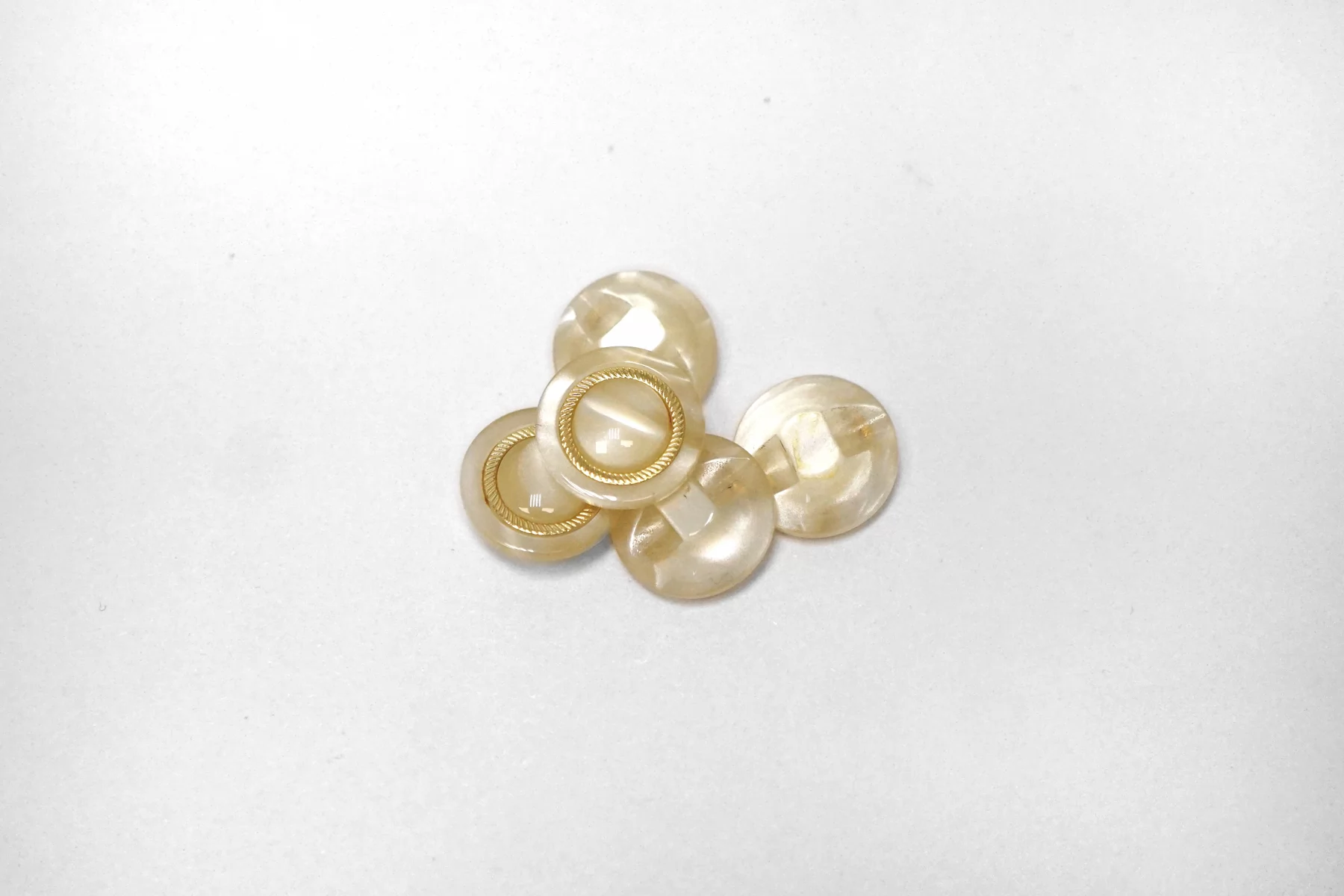 Пуговица пластиковая на ножке бежевая с золотой вставкой 15 мм (S-3) 26112555