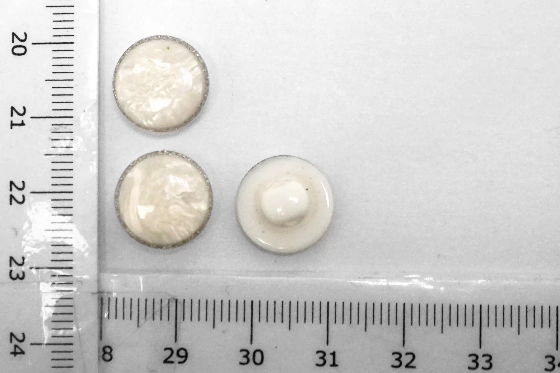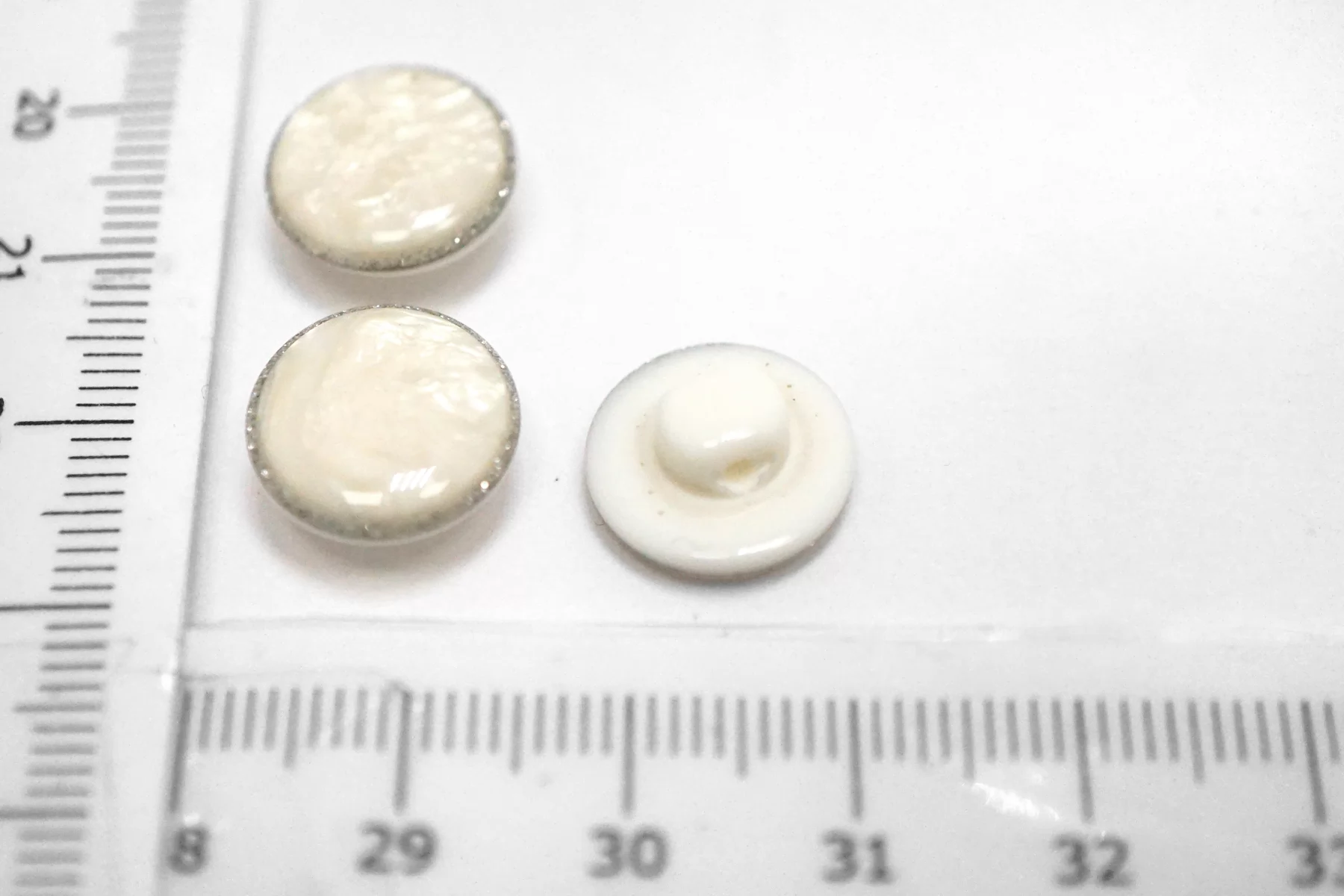 Пластиковая пуговица с перламутром, белого цвета на ножке. Размер 12 мм .