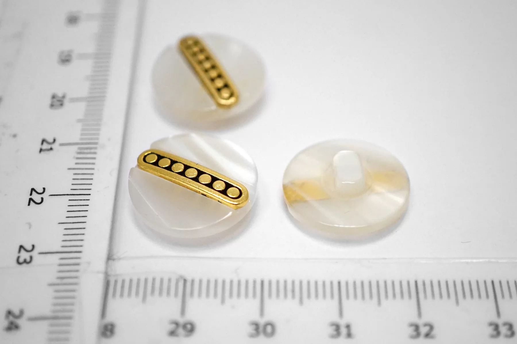 Пуговица пластиковая на ножке Белая с золотой вставкой 18 мм (S-3) 26112520