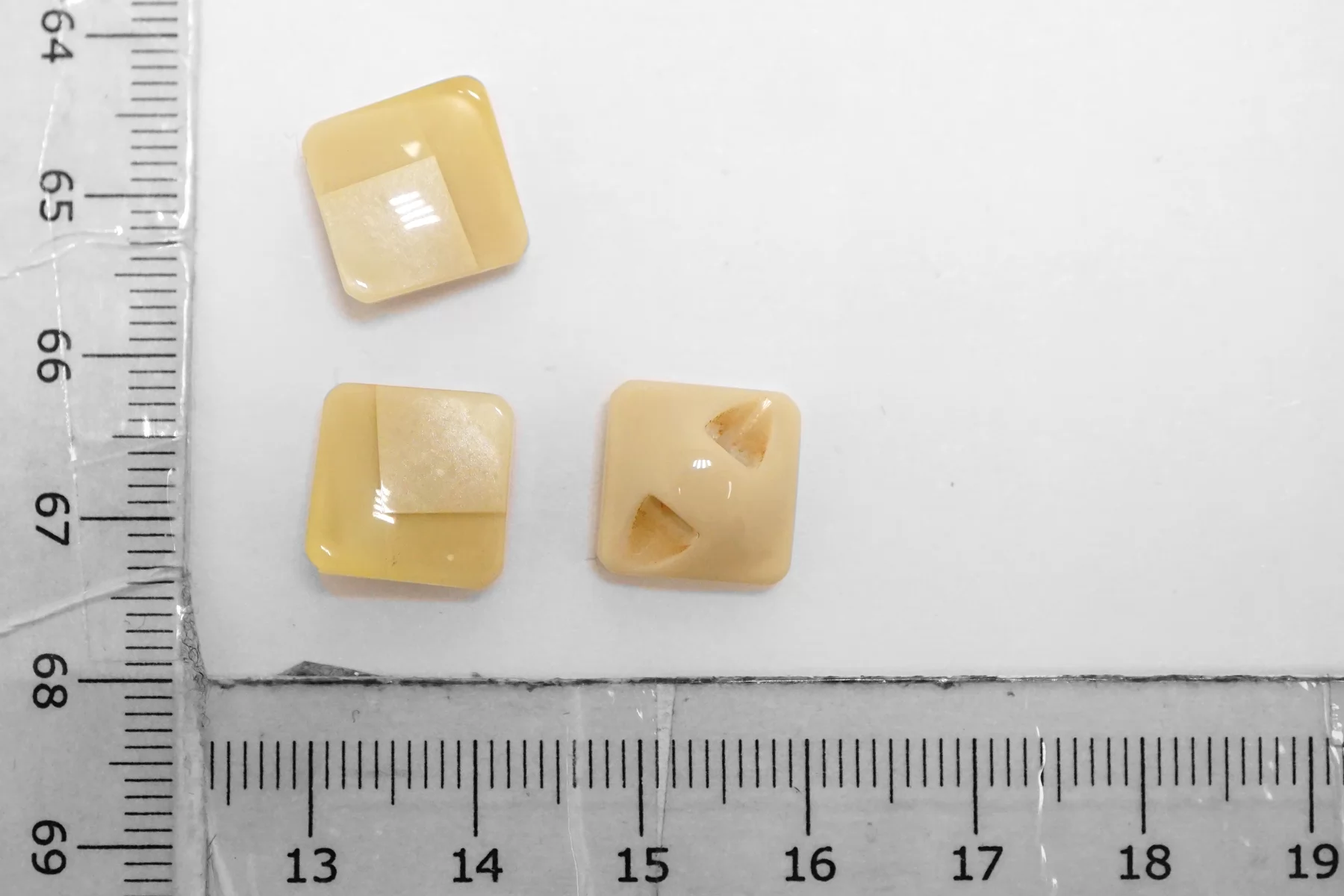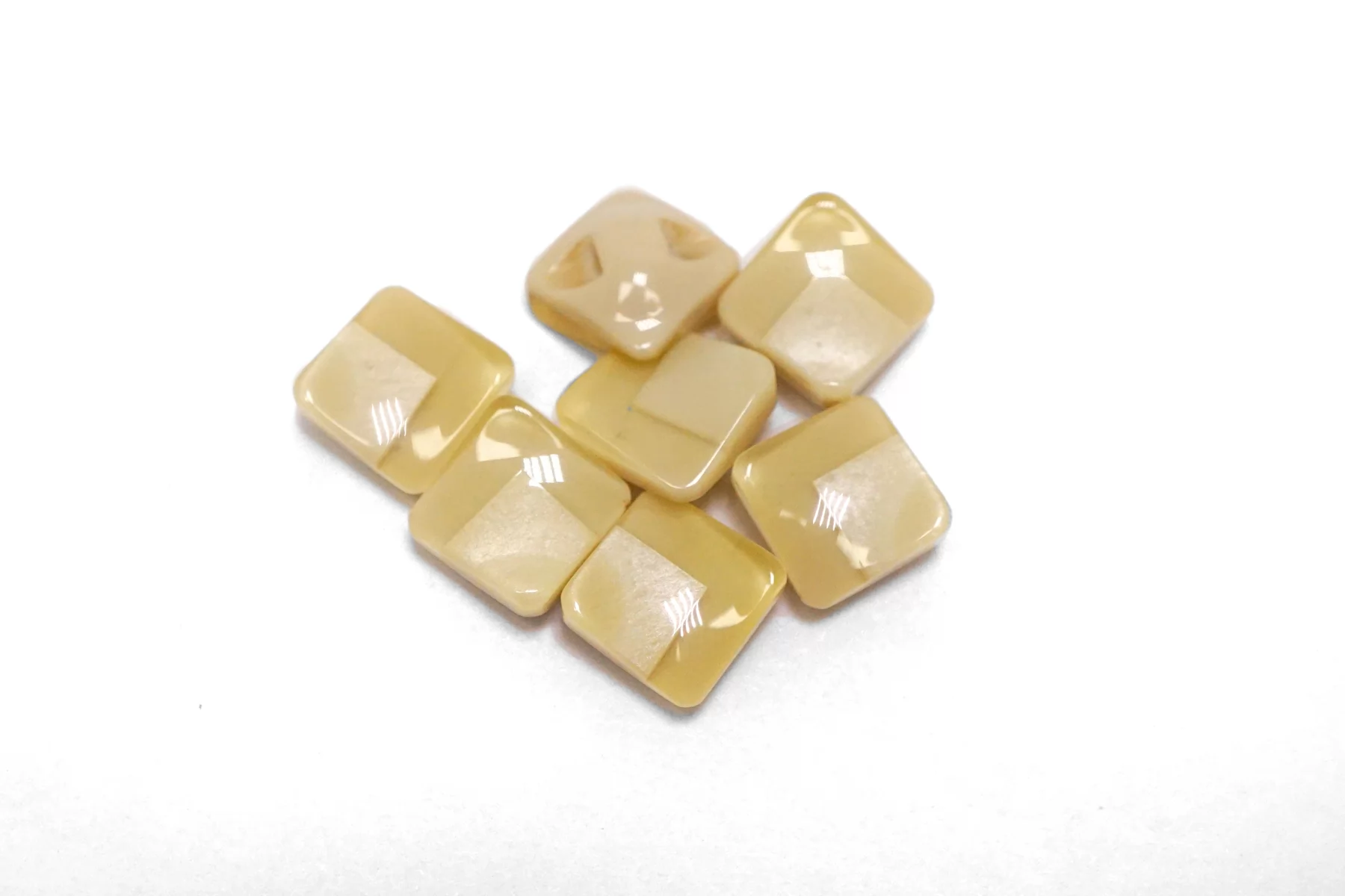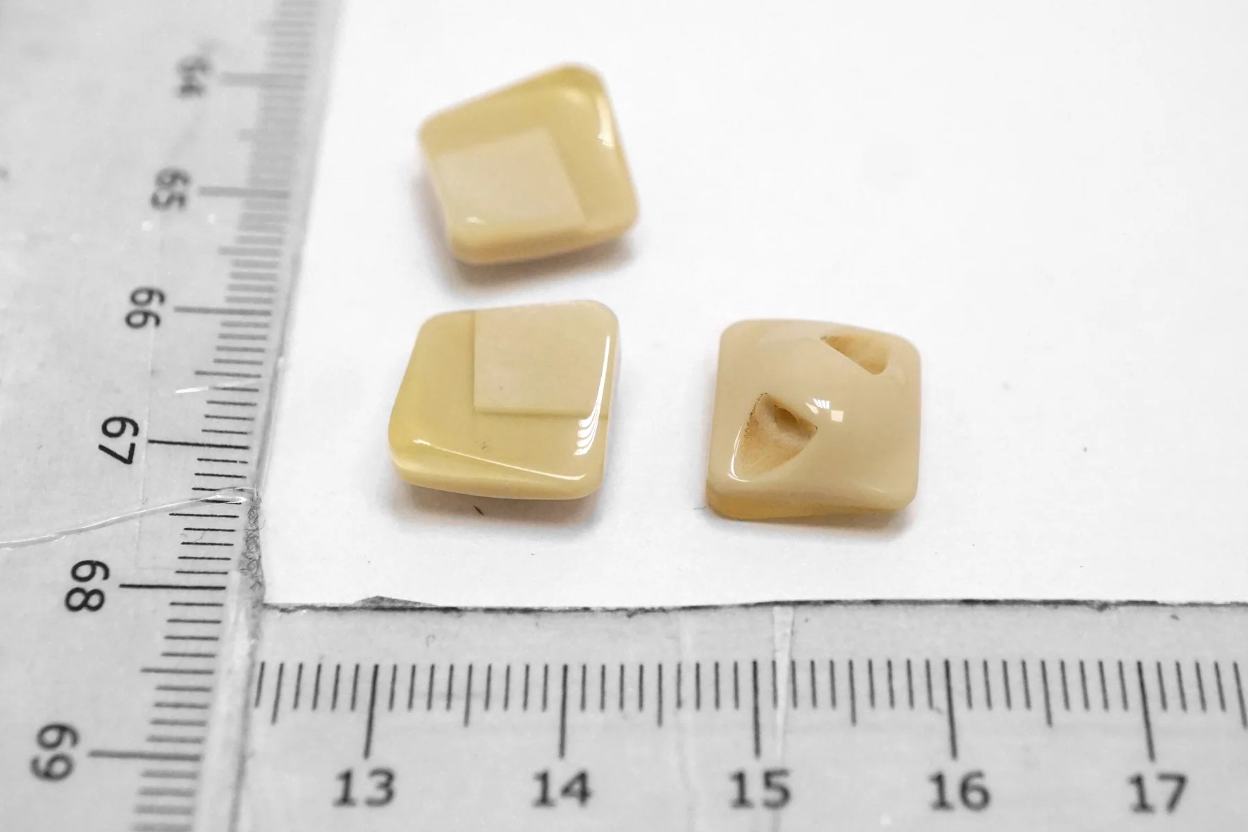 Пластиковая пуговица квадратная , бежевого цвета на ножке. Размер 12 мм .