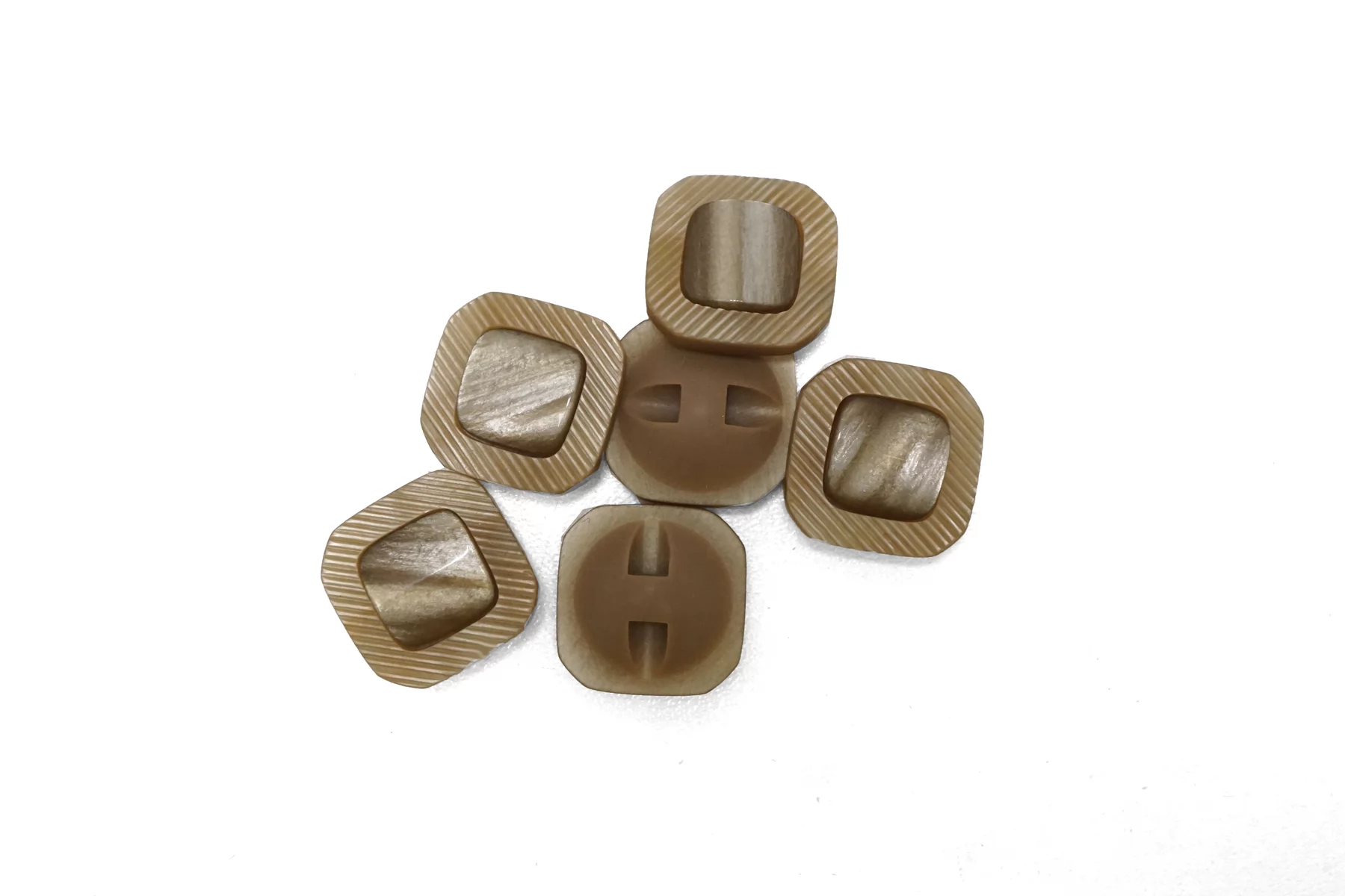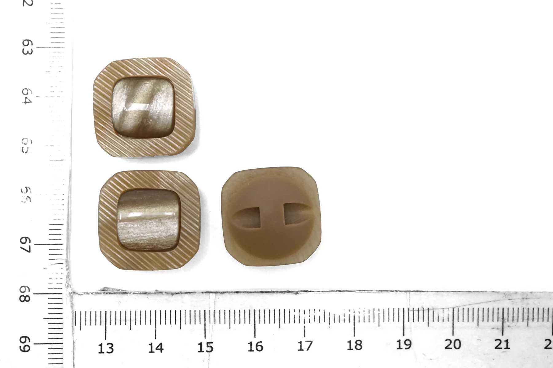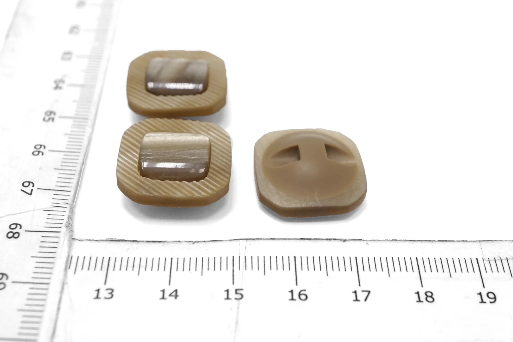 Пуговица пластиковая квадратная на ножке , бежевого цвета с перламутровой вставкой , размер 20 мм.