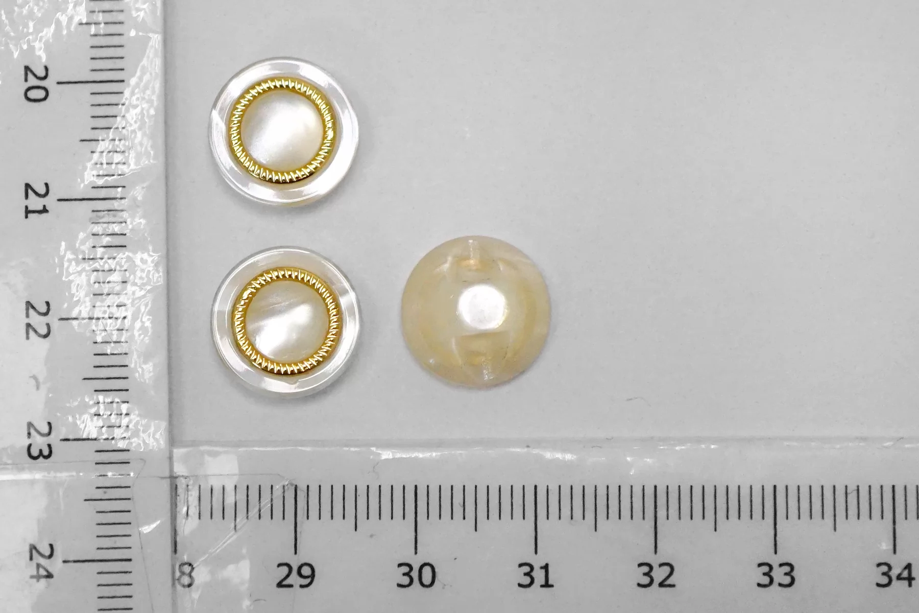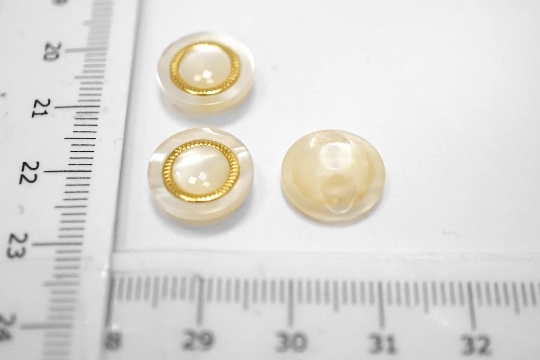 Пуговица пластиковая на ножке бежевая с золотой вставкой 12 мм (S-3) 12022611