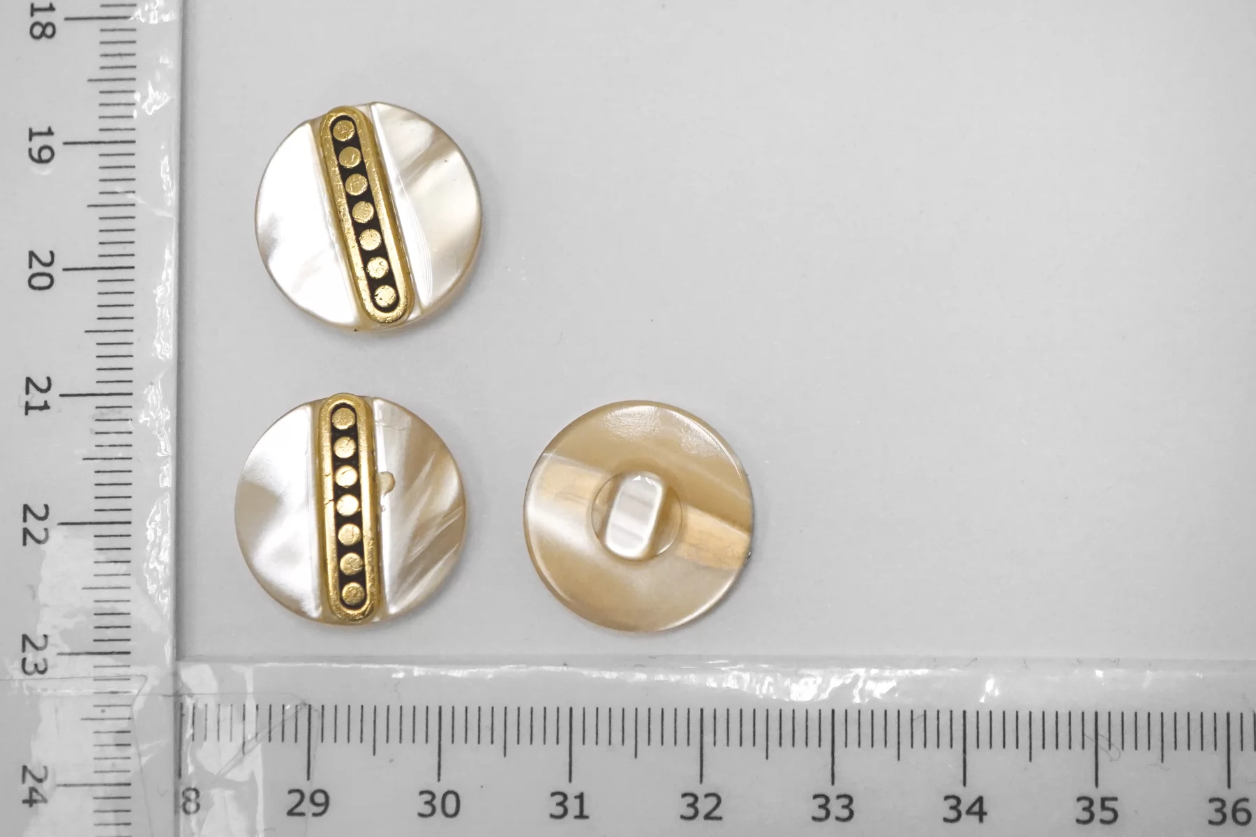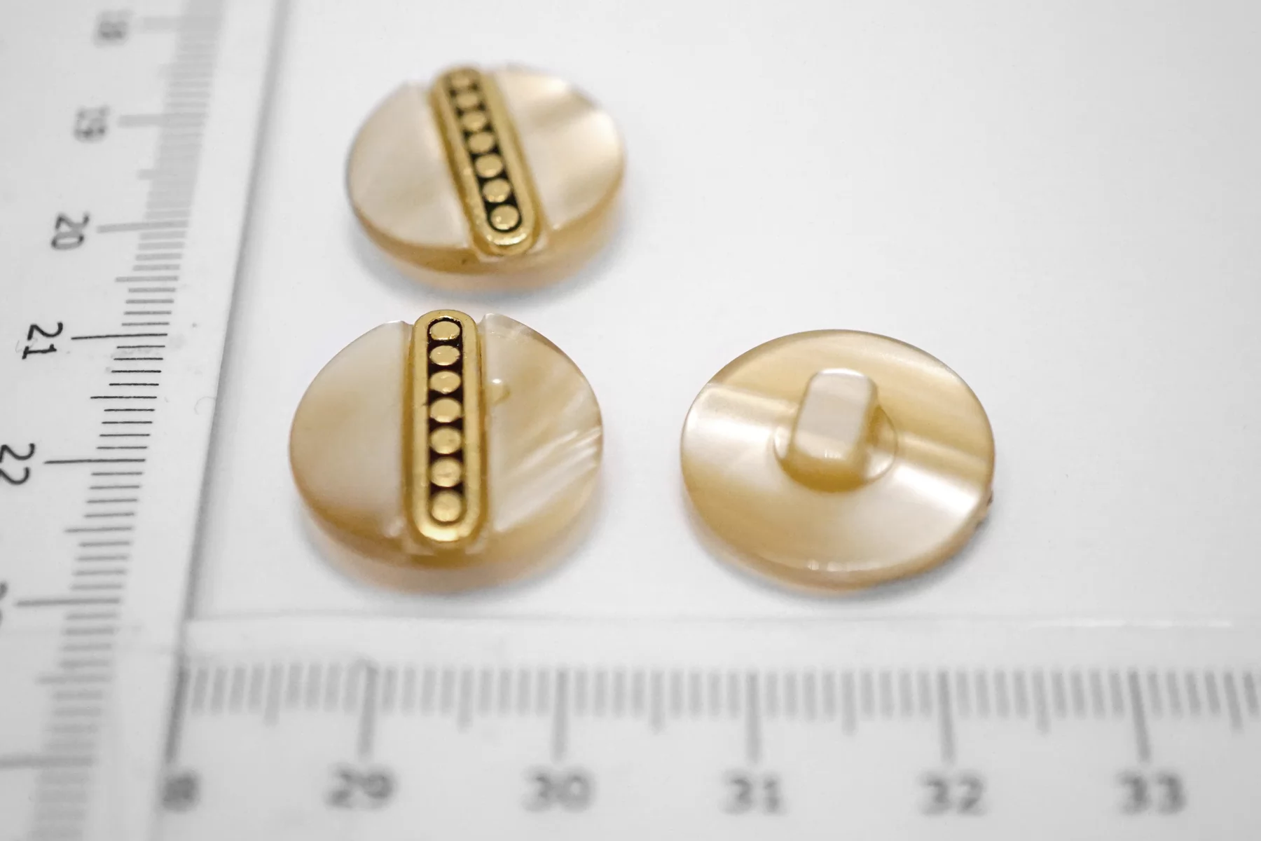 Пуговица пластиковая на ножке Бежевая с золотой вставкой 18 мм (S-3) 26112522
