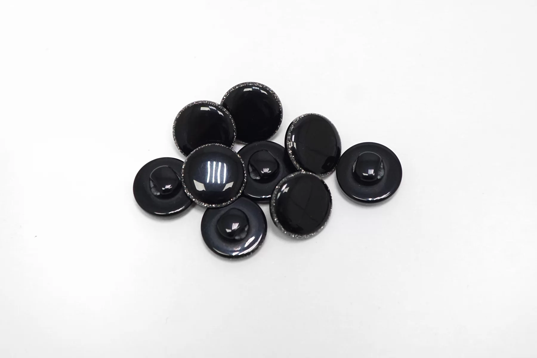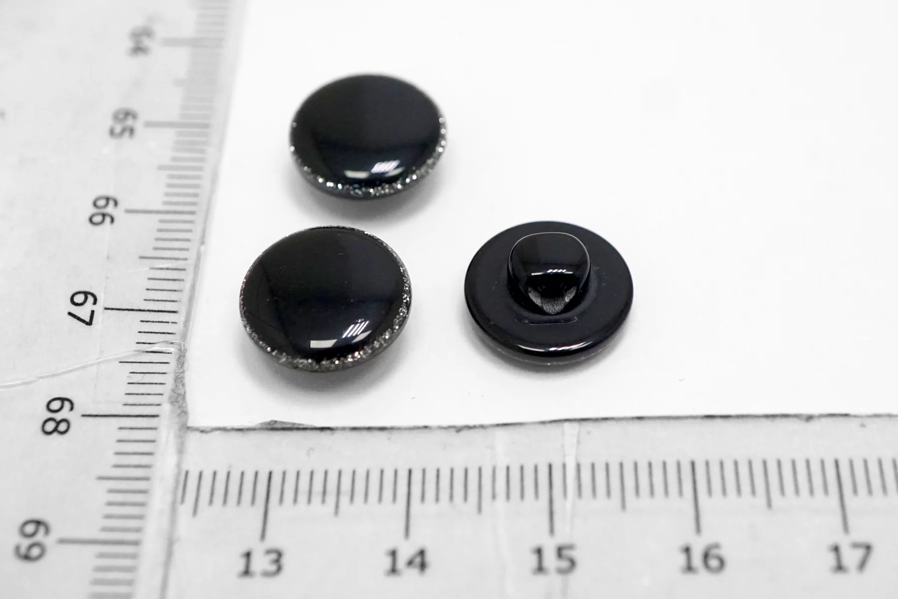Пластиковая пуговица глянцевая, черного цвета на ножке. Размер 12 мм .