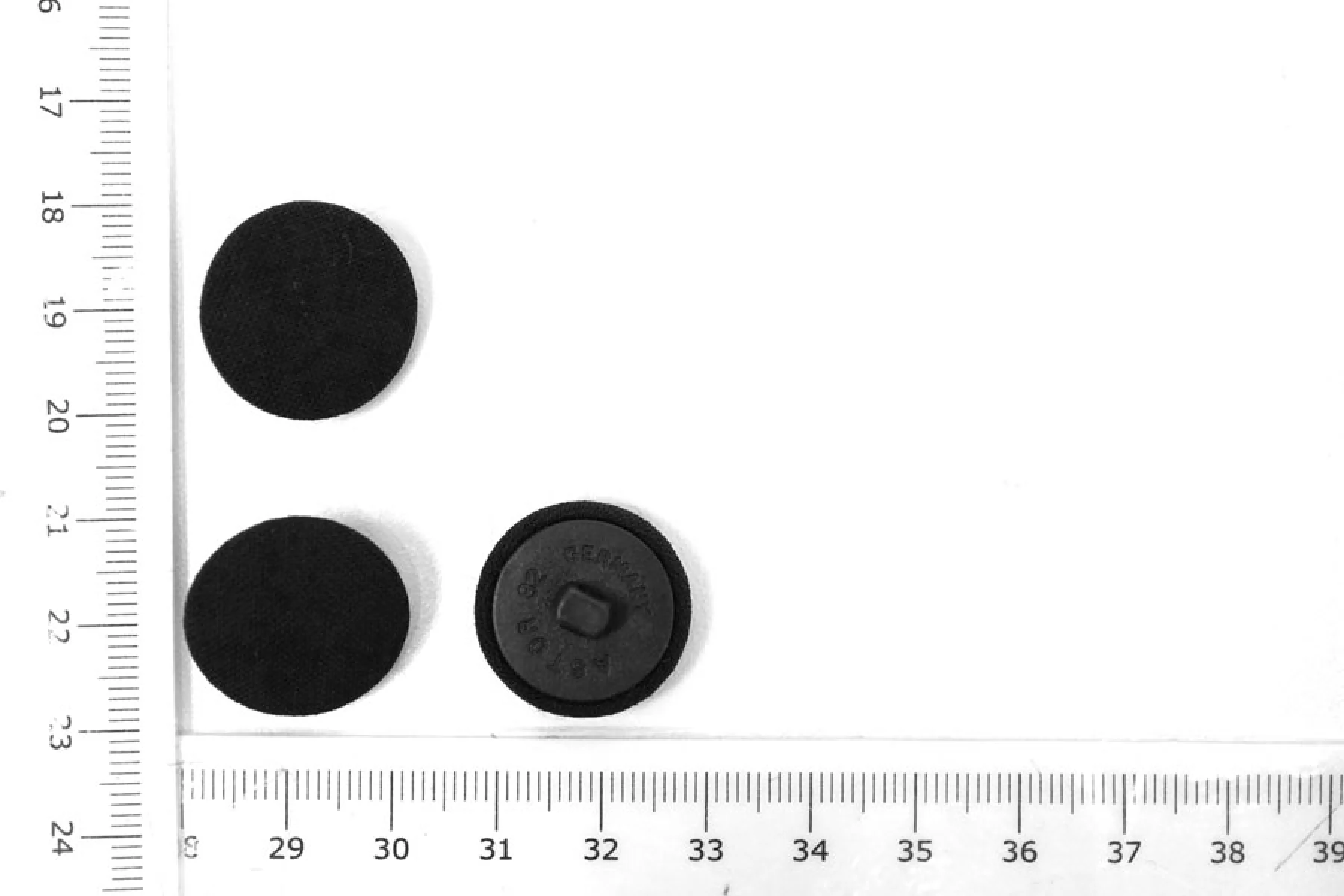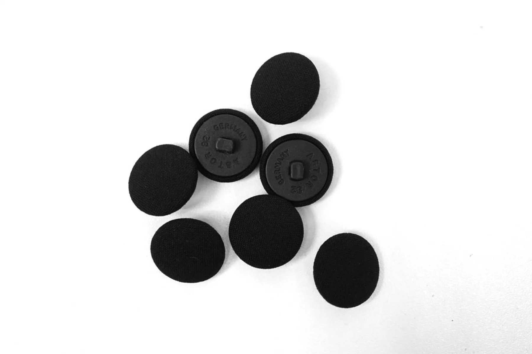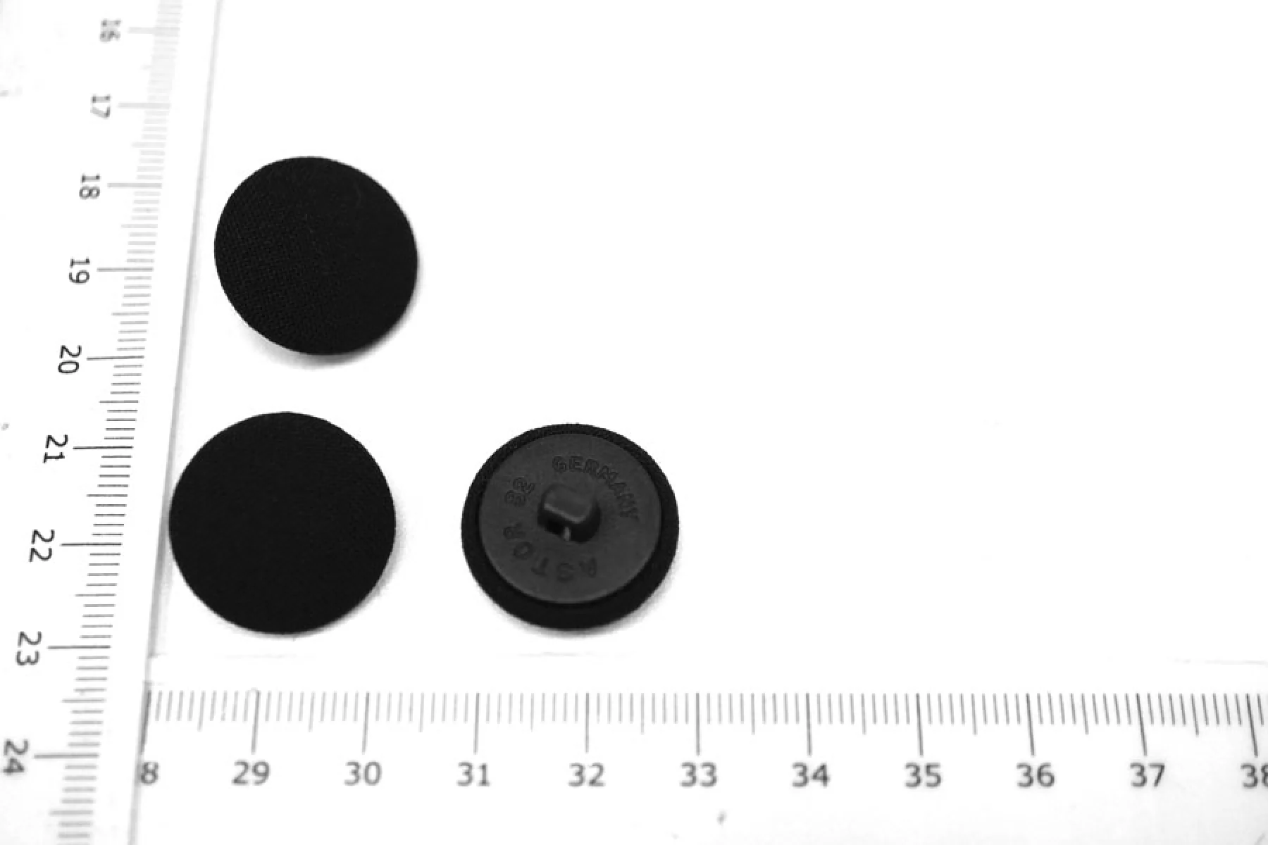 Пуговица пластиковая на ножке черная обтянутая тканью 20 мм S1 20122402