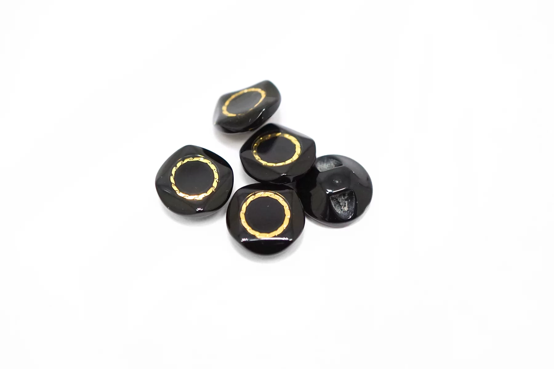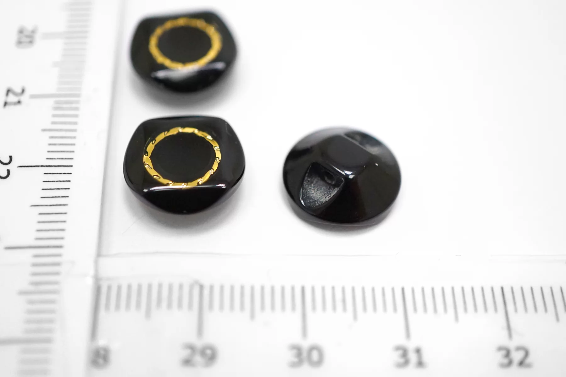 Пуговица пластиковая на ножке Черная с золотой вставкой 12 мм (S-3) 26112541