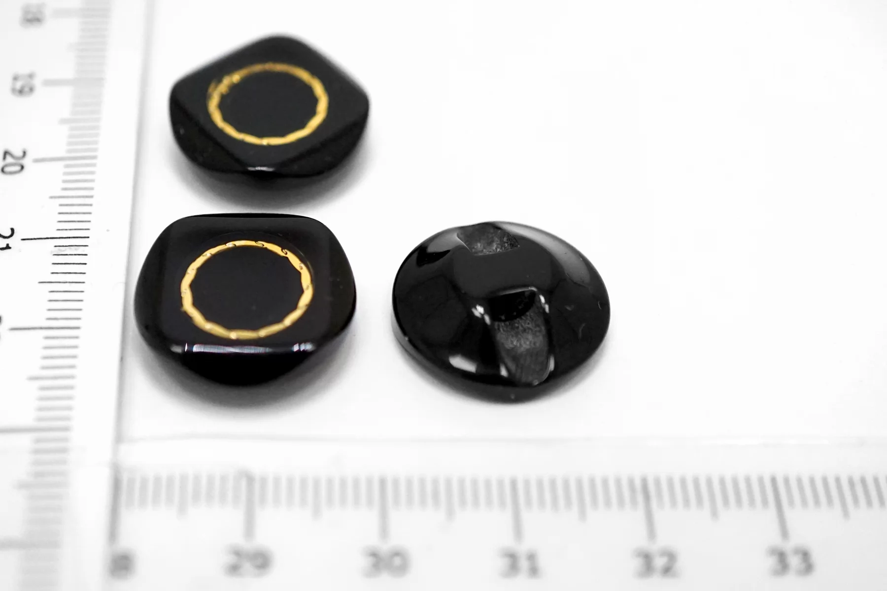 Пуговица пластиковая на ножке Черная с золотой вставкой 18 мм (S-3) 26112540