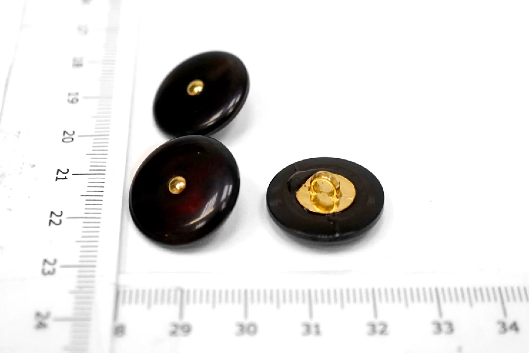 Пуговица пластик чёрная с золотой вставкой , на ножке , размер 20 мм.