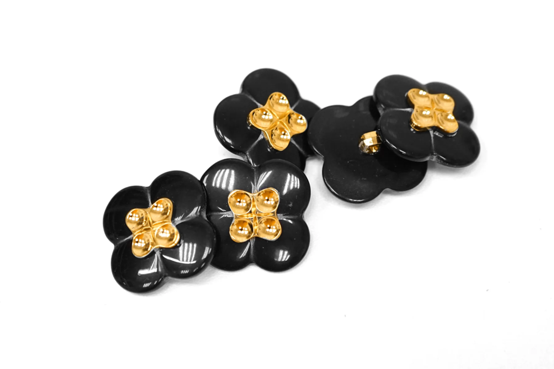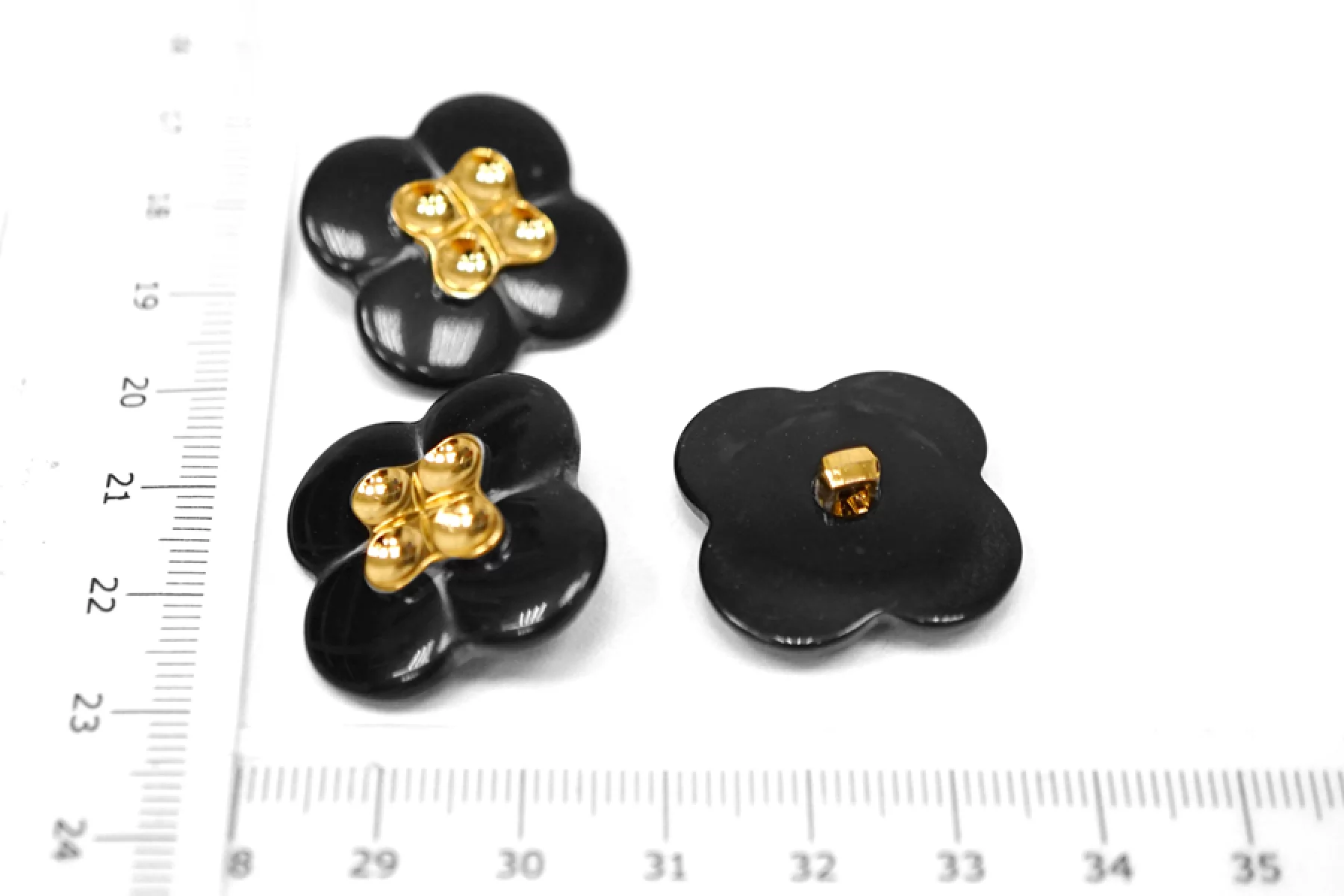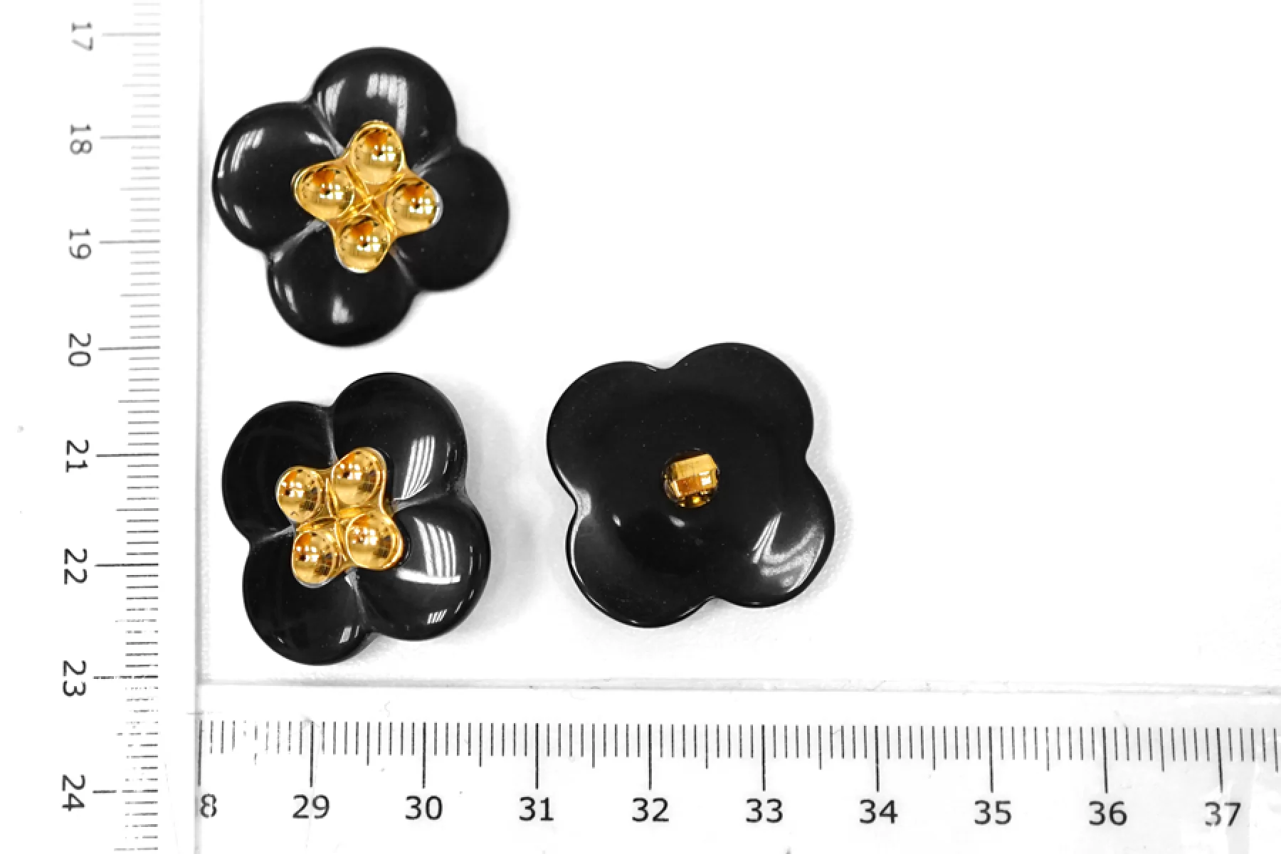 Пуговица пластиковая на ножке чёрная с золотом 25 мм U2 18122468
