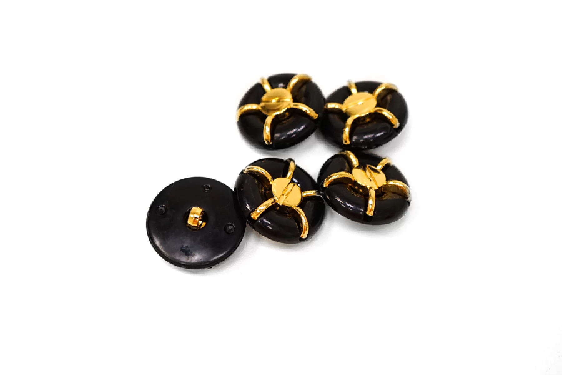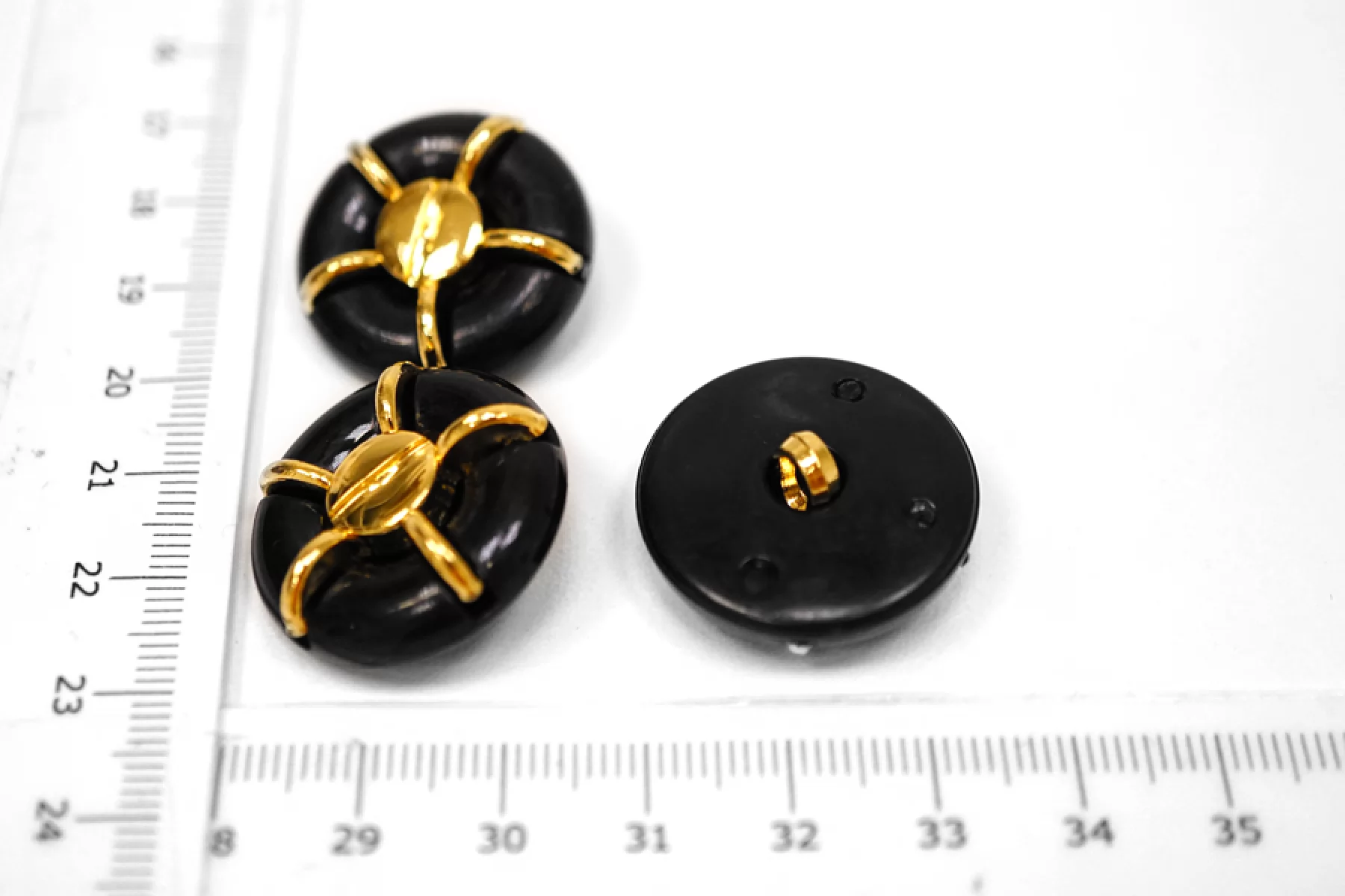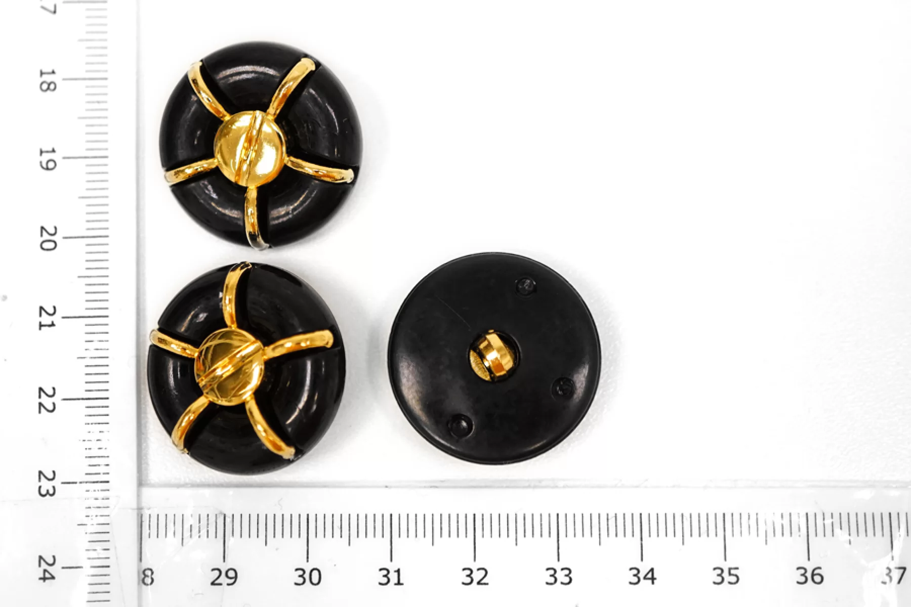 Пуговица пластиковая на ножке чёрная с золотом 25 мм U2 18122469