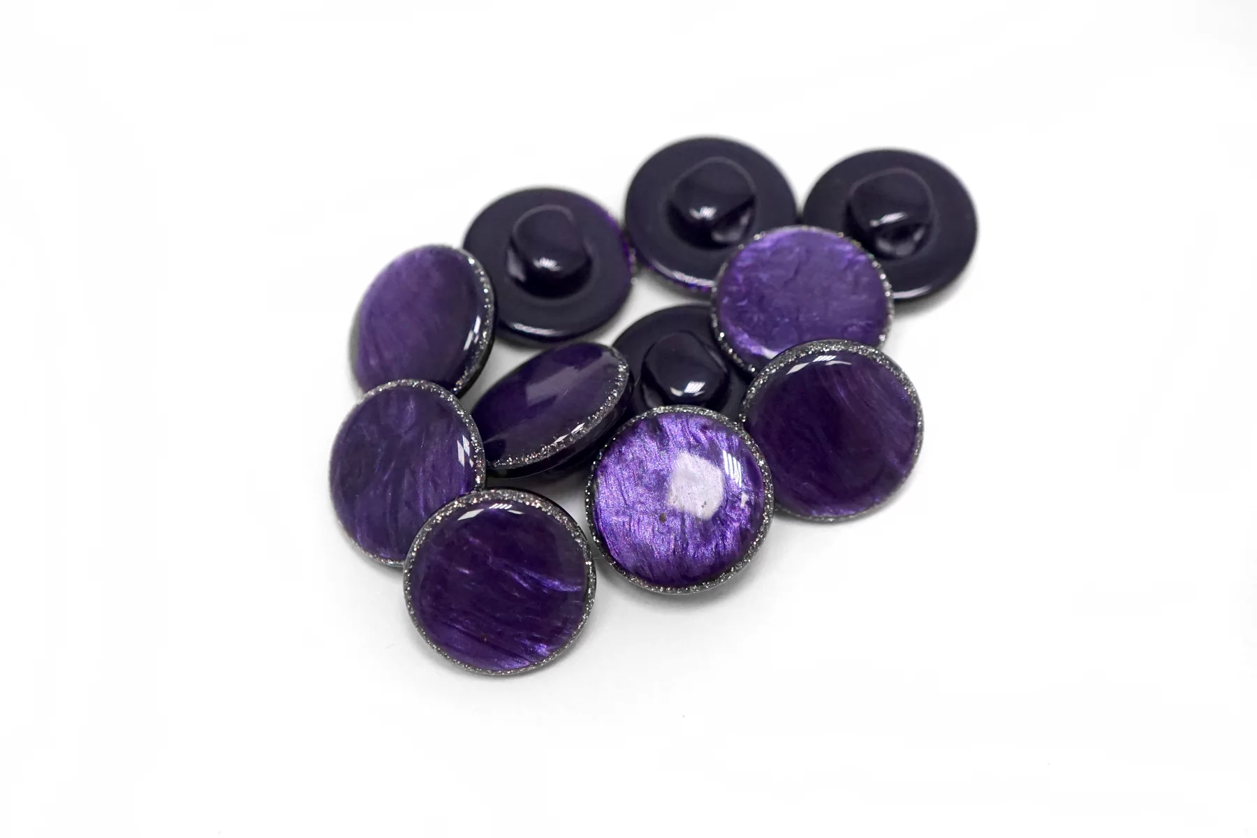 Пластиковая пуговица с перламутром, фиолетового цвета на ножке. Размер 12 мм .