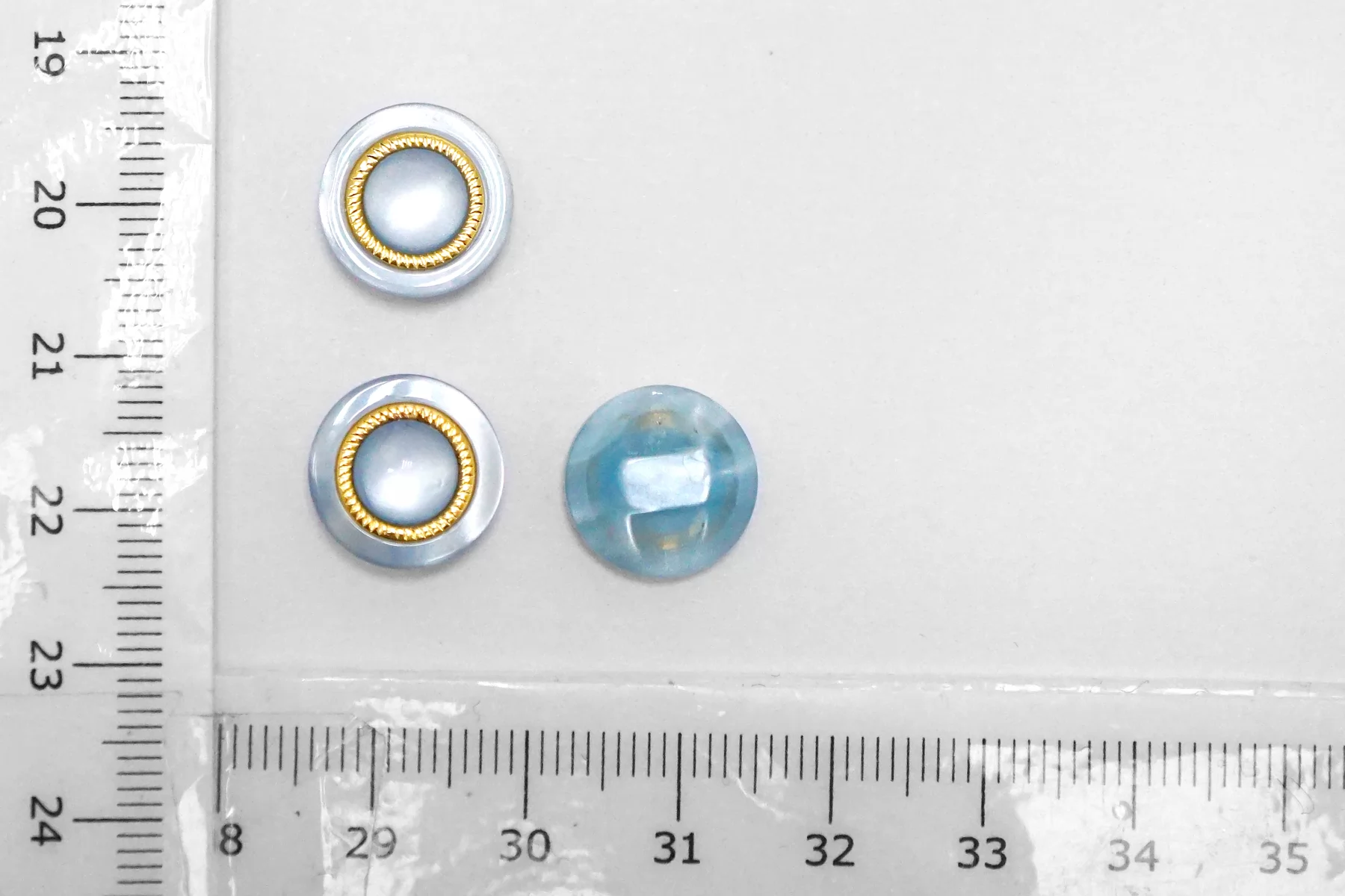 Пуговица пластиковая на ножке Голубая с золотой вставкой 12 мм (S-3) 26112551