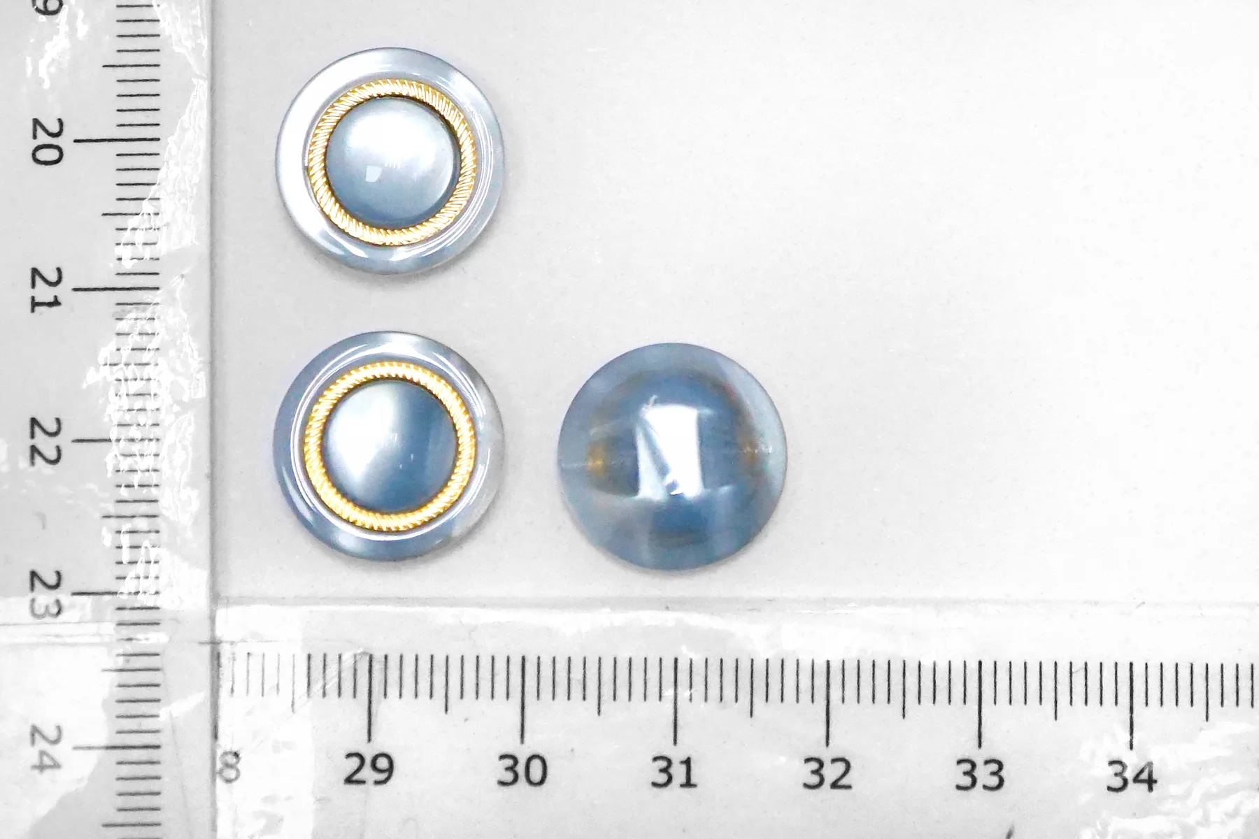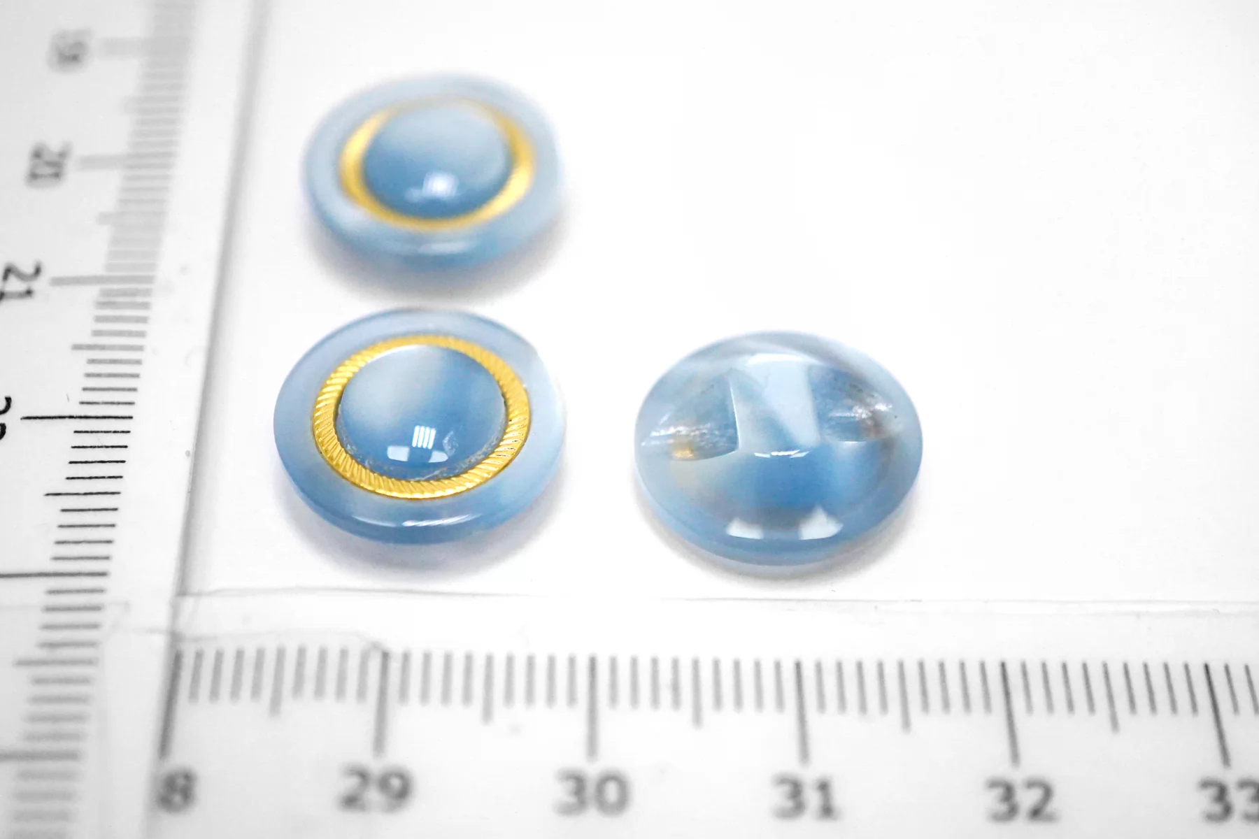 Пуговица пластиковая на ножке Голубая с золотой вставкой 15 мм (S-3) 12022609