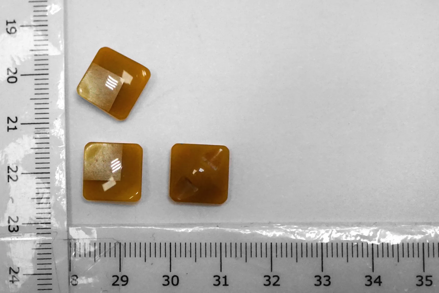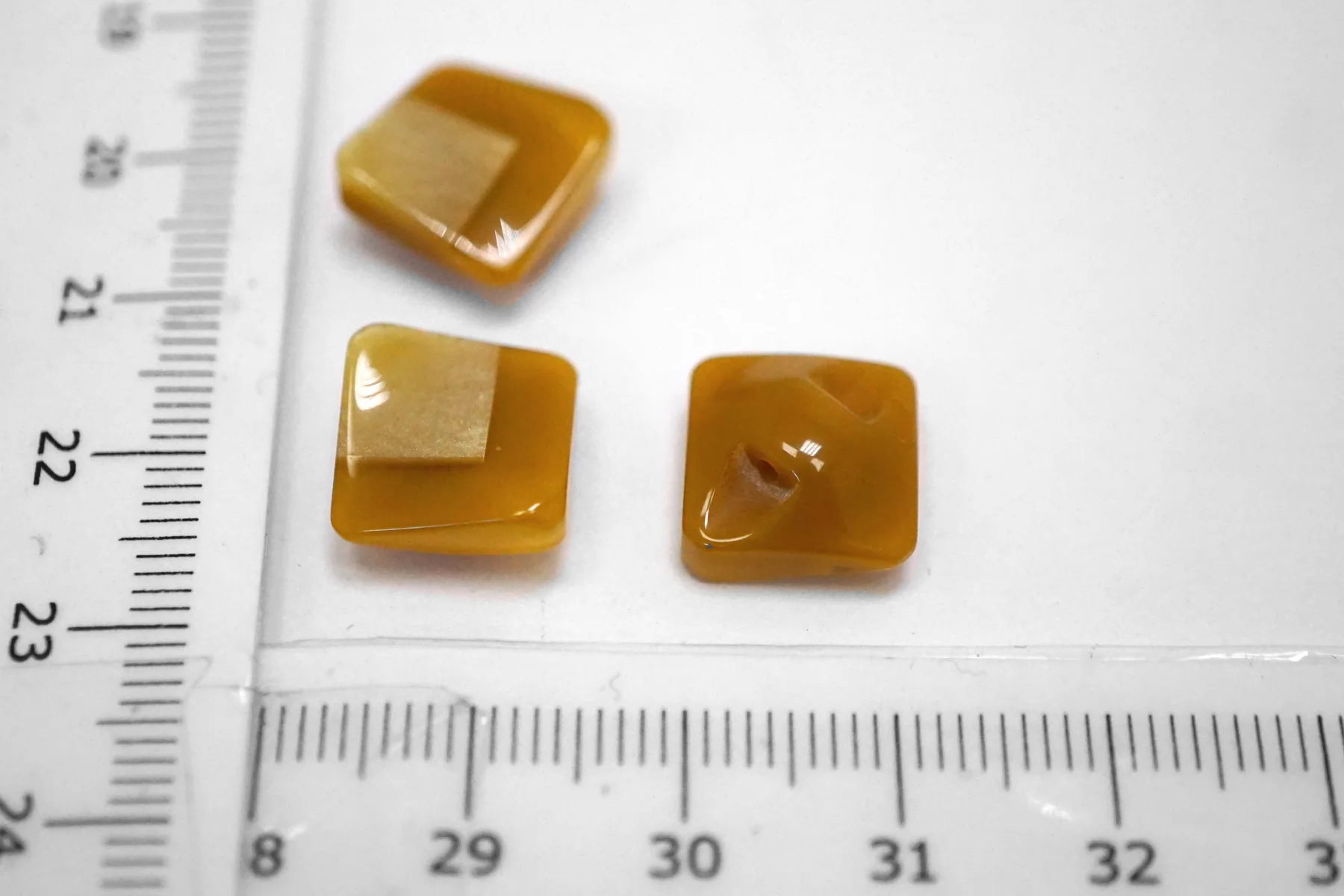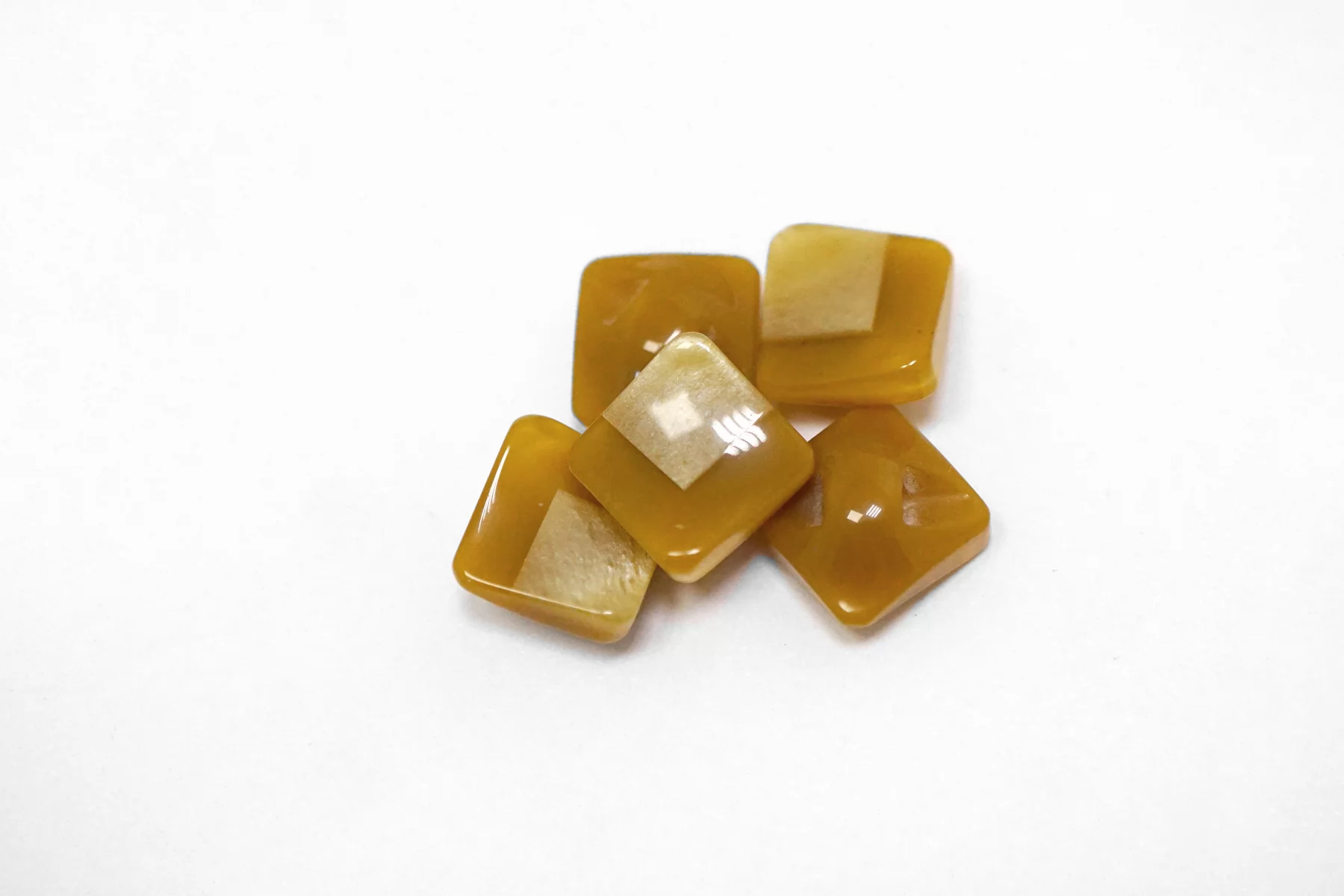 Пластиковая пуговица квадратная , горчичного цвета на ножке с перламутровой вставкой . Размер 12 мм .