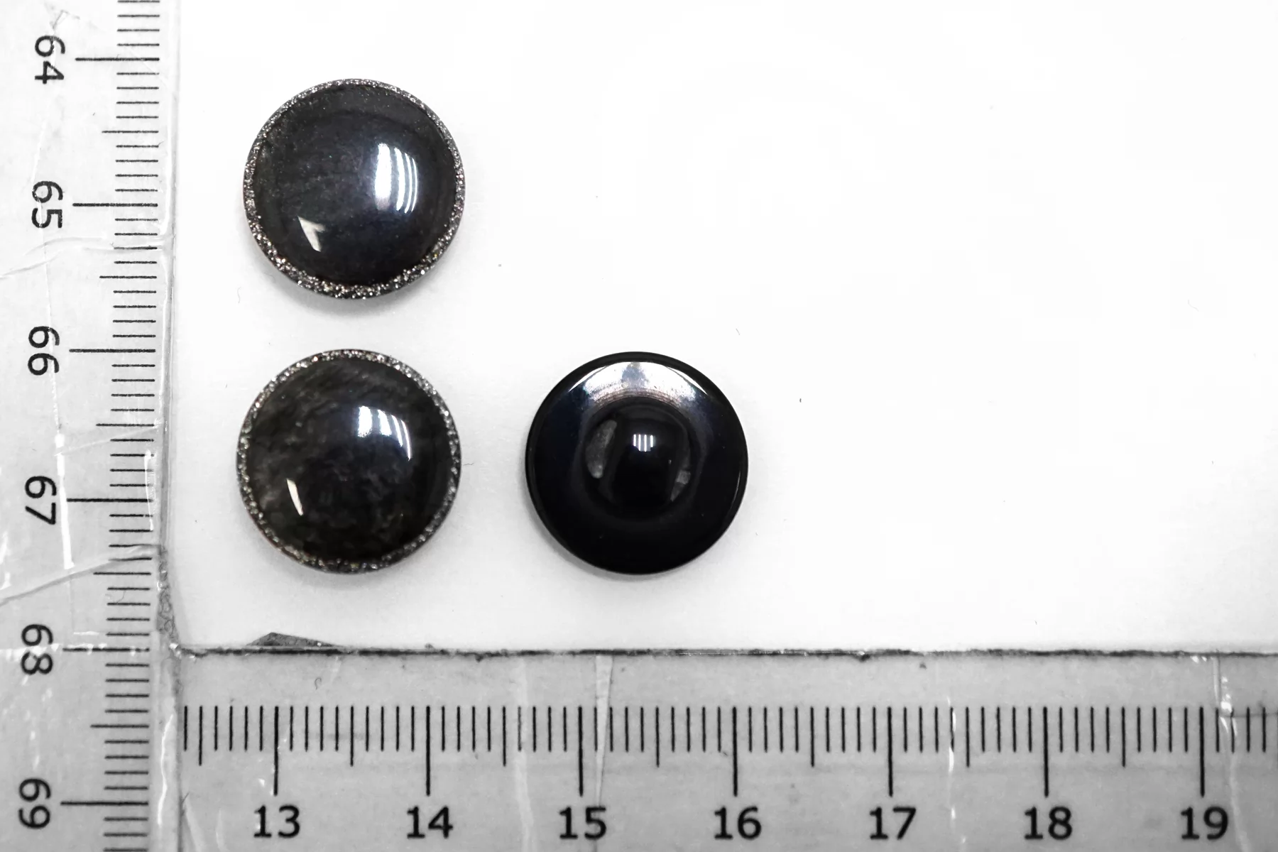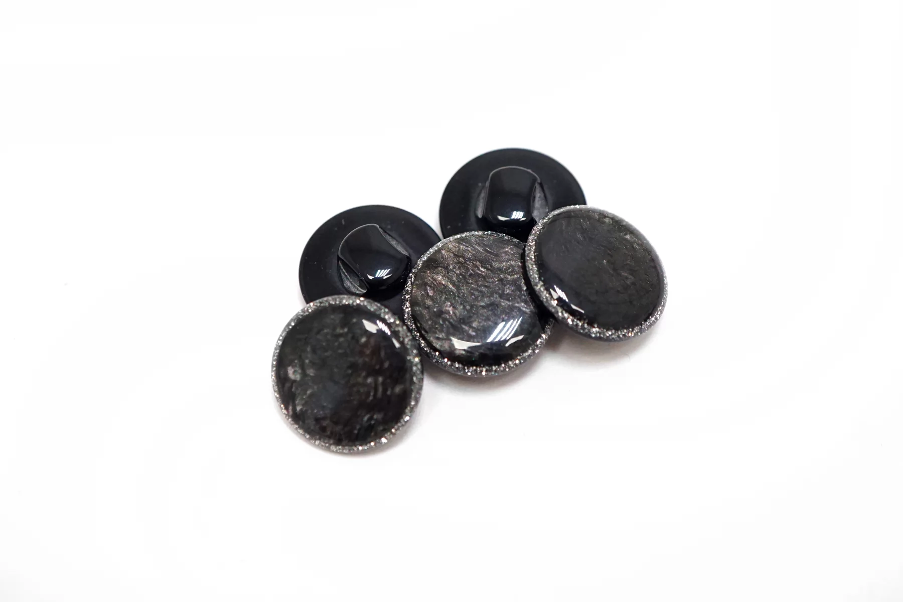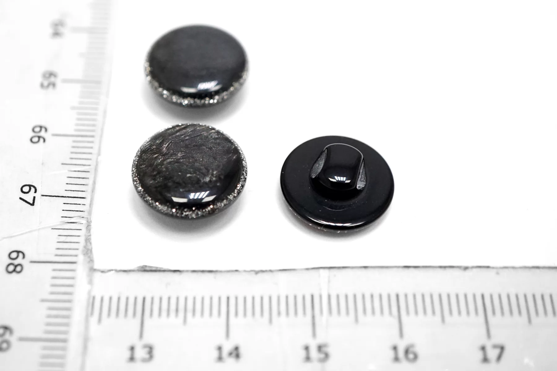 Пластиковая пуговица с перламутром, цвета графит на ножке. Размер 15 мм .