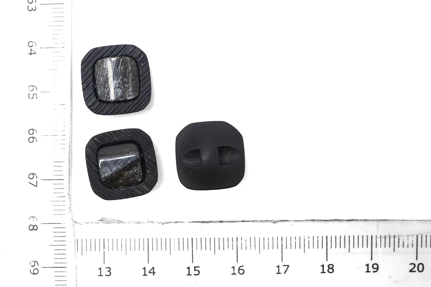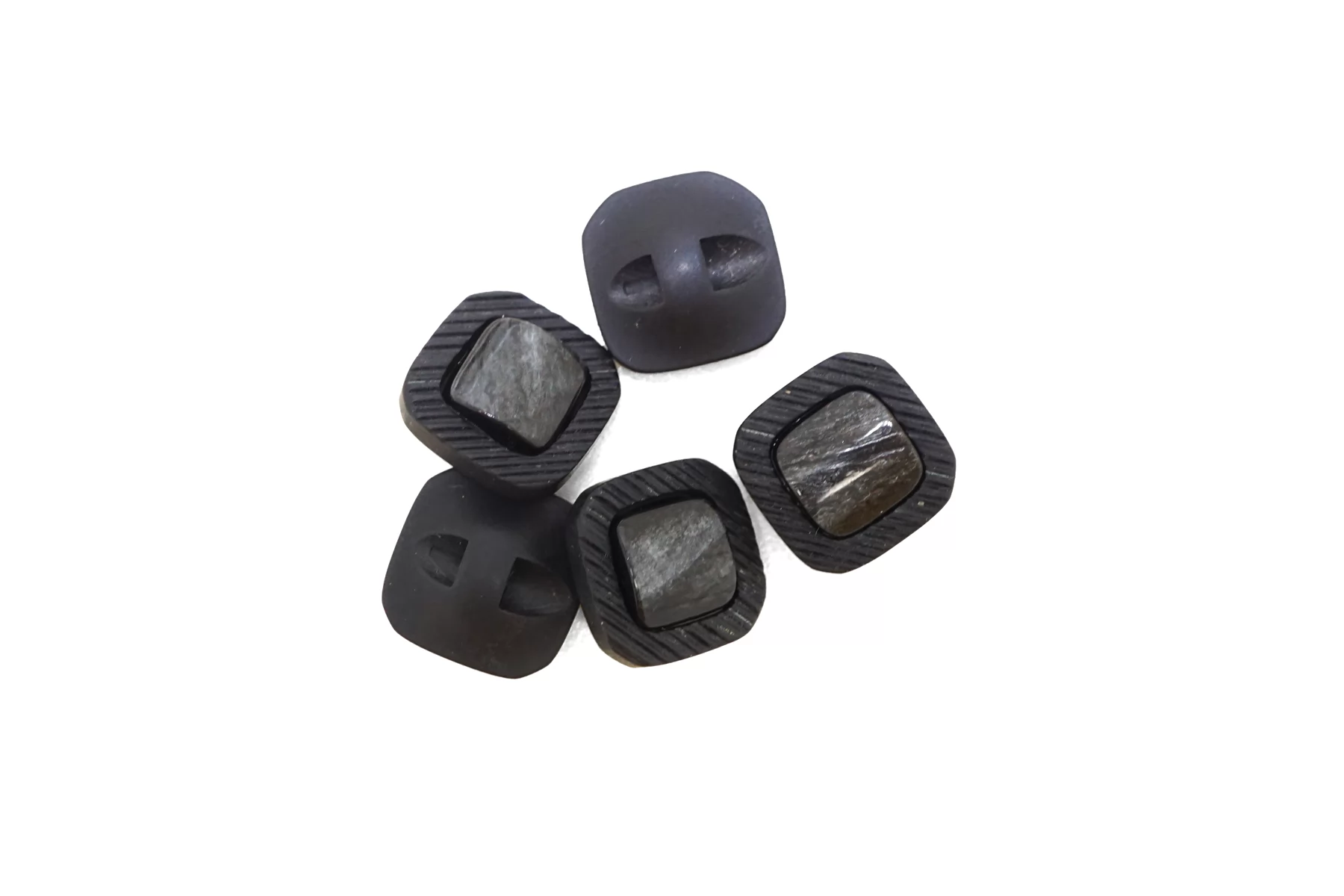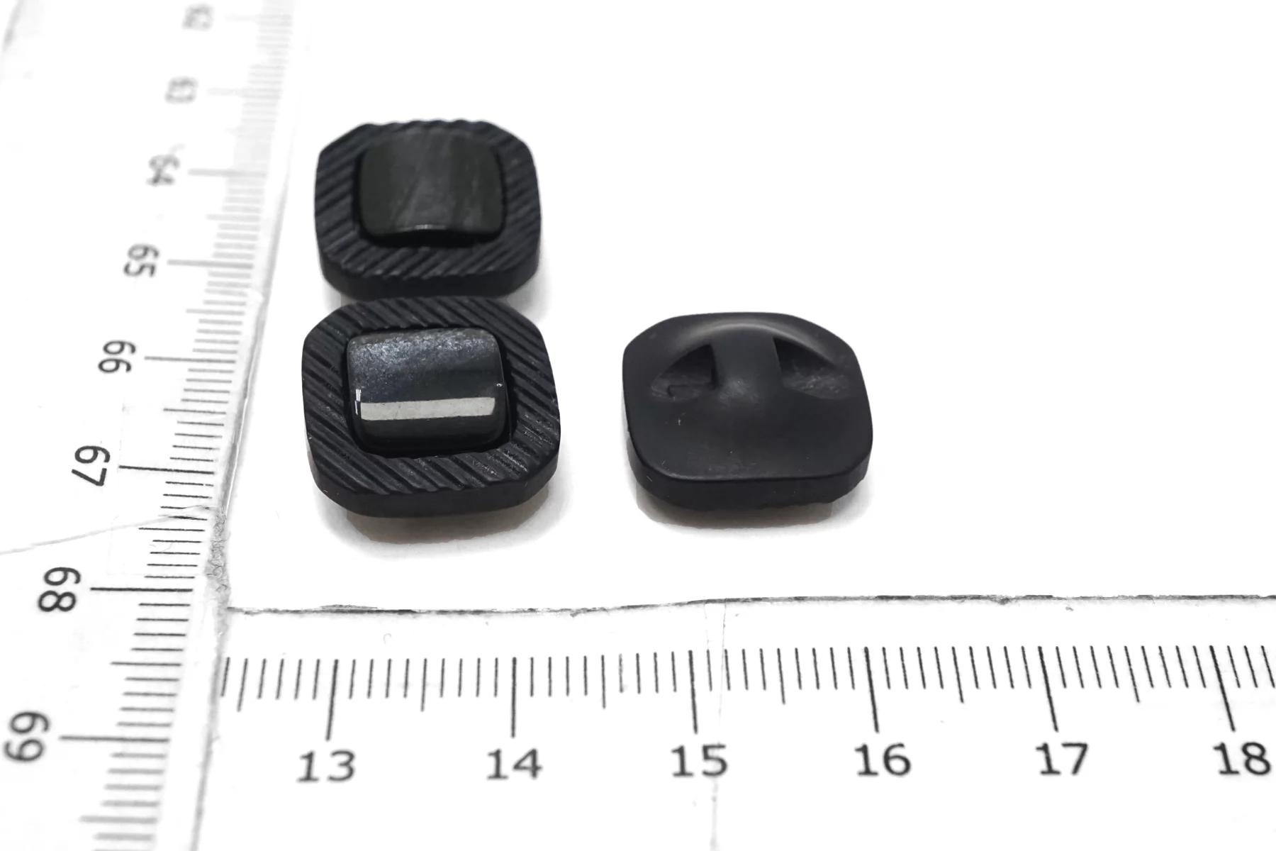 Пуговица пластиковая квадратная на ножке ,цвета графит с перламутровой вставкой , размер 15 мм.