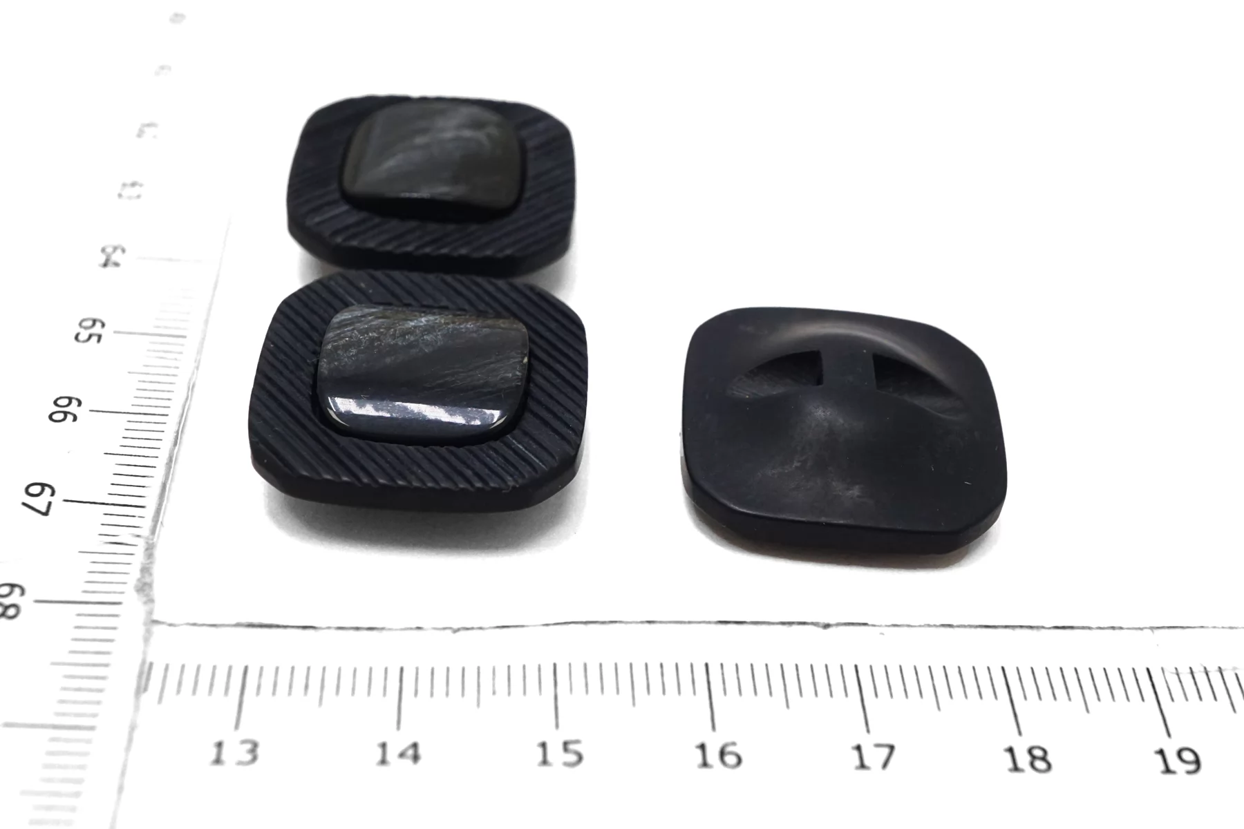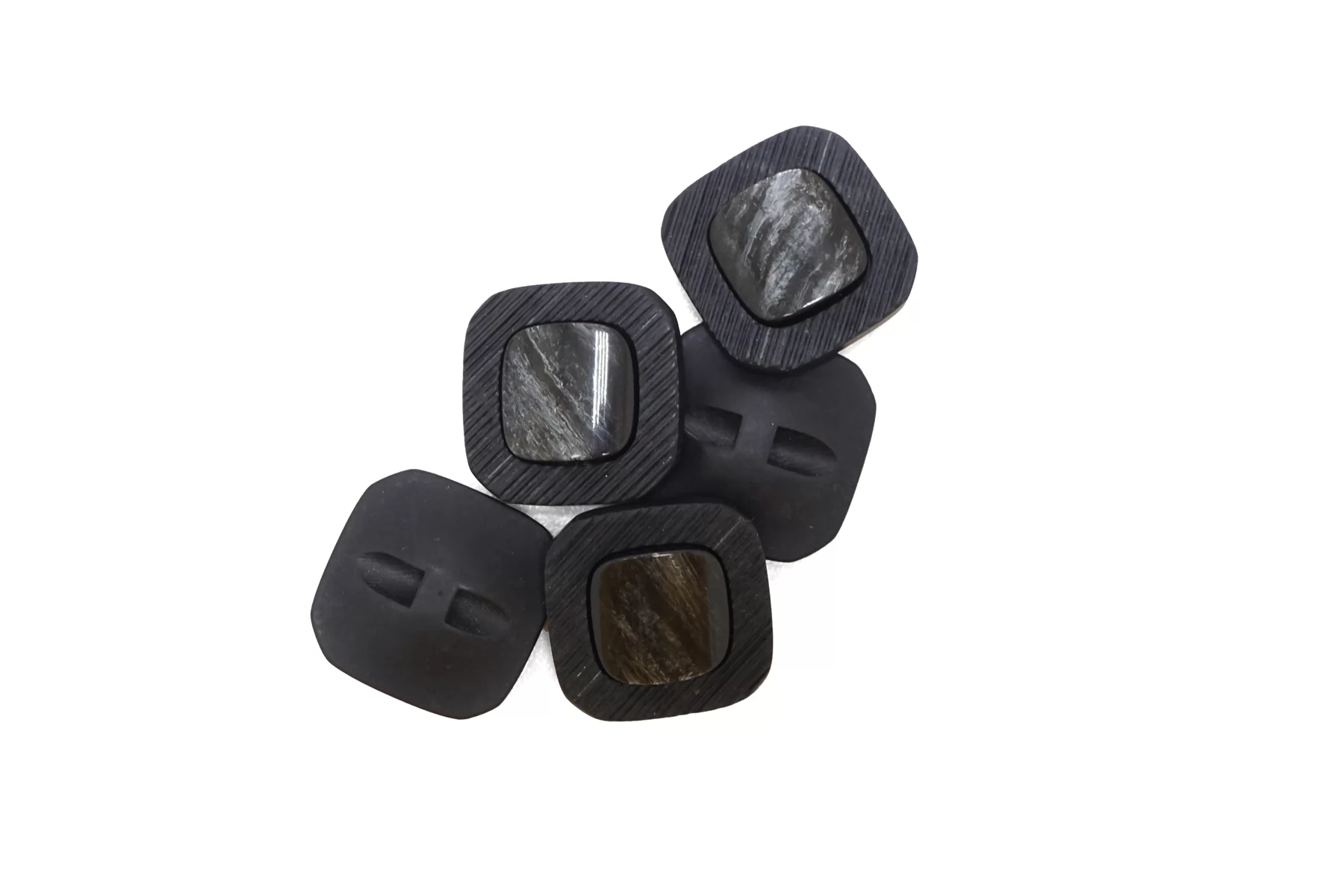 Пуговица пластиковая квадратная на ножке ,цвета графит с перламутровой вставкой , размер 25 мм.