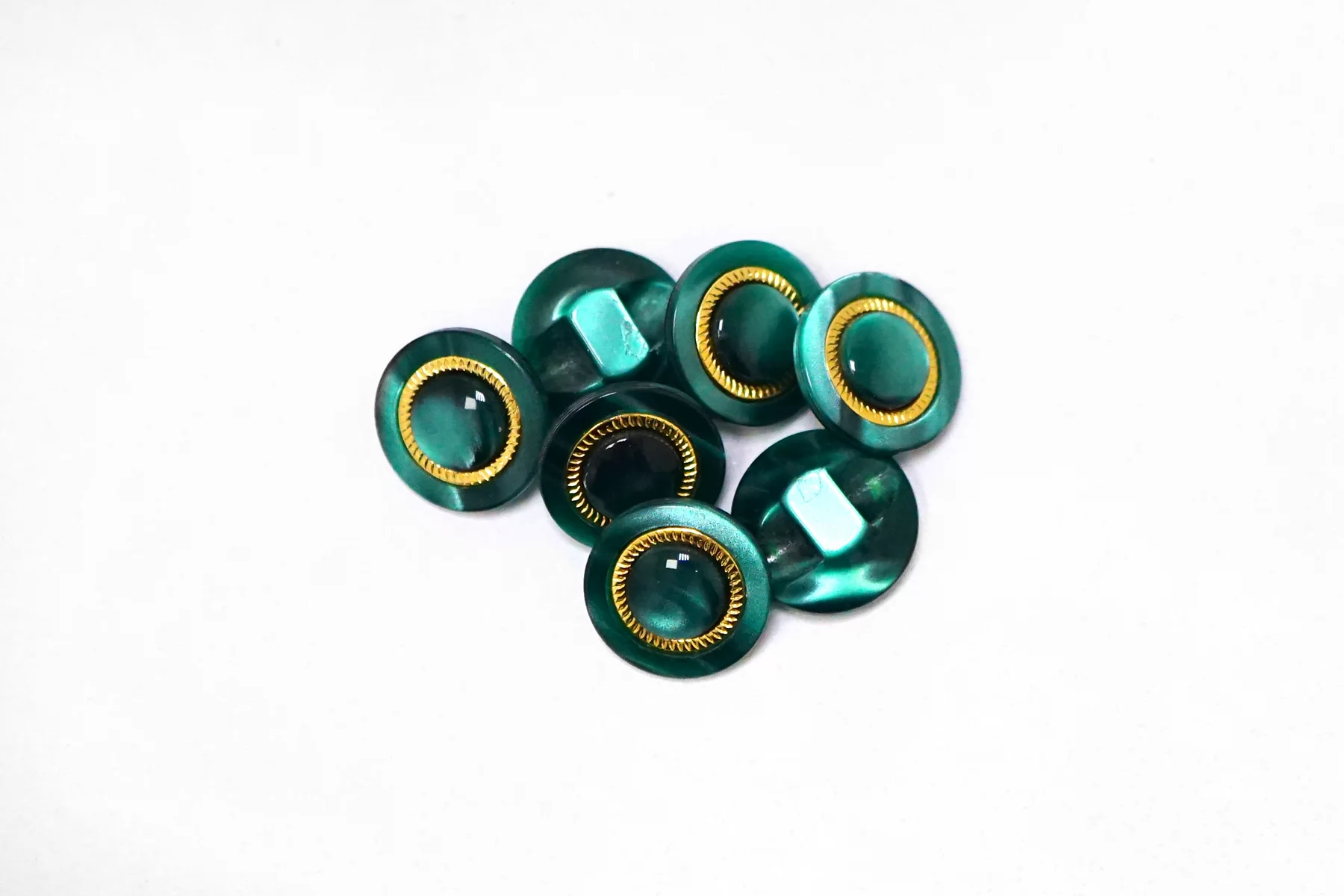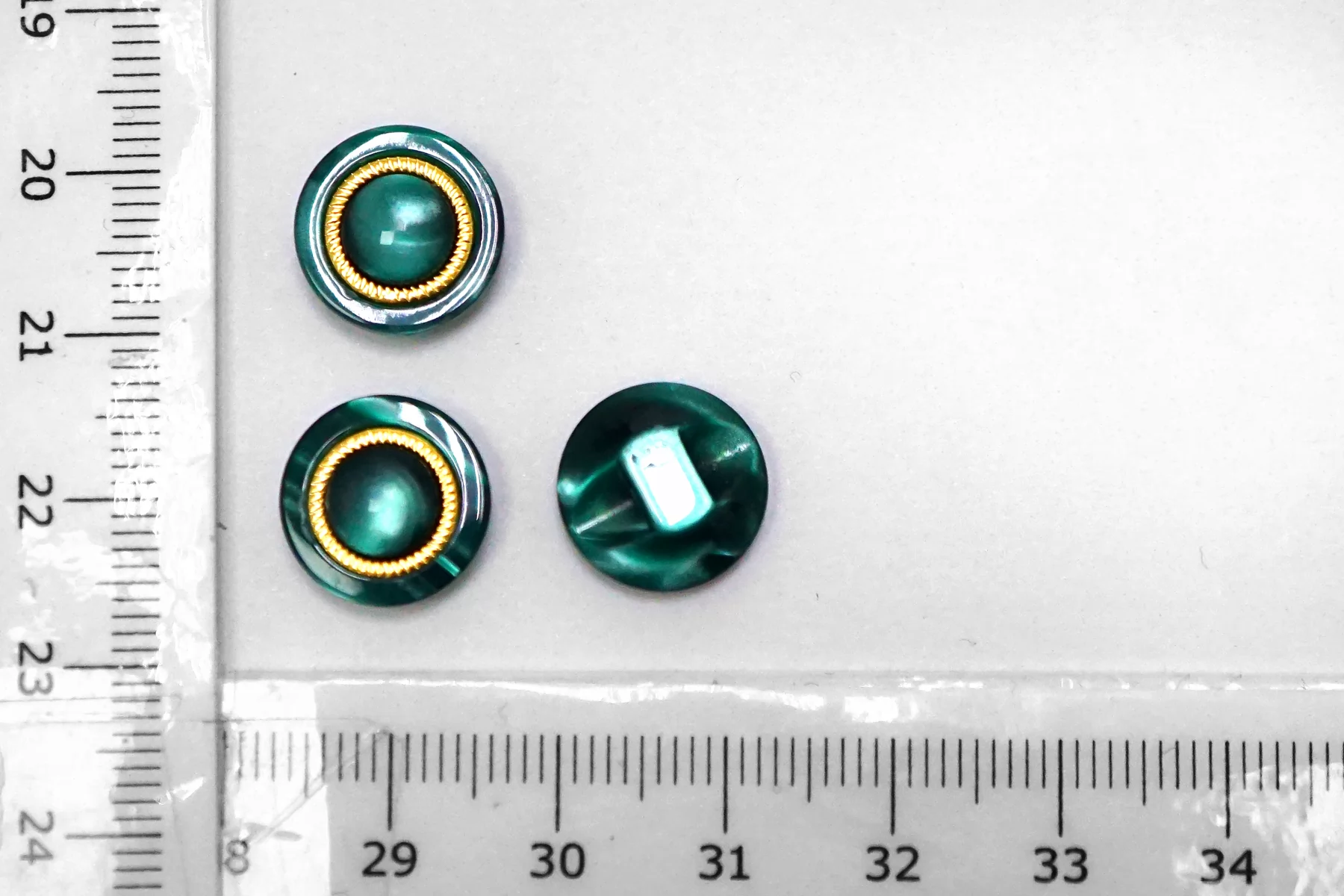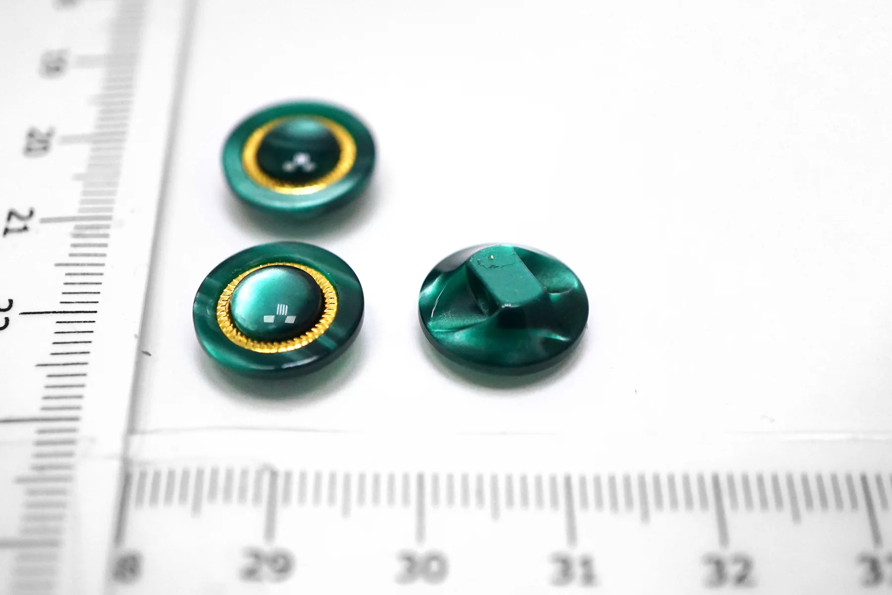 Пуговица пластиковая на ножке Изумрудная с золотой вставкой 12 мм (S-3) 26112549