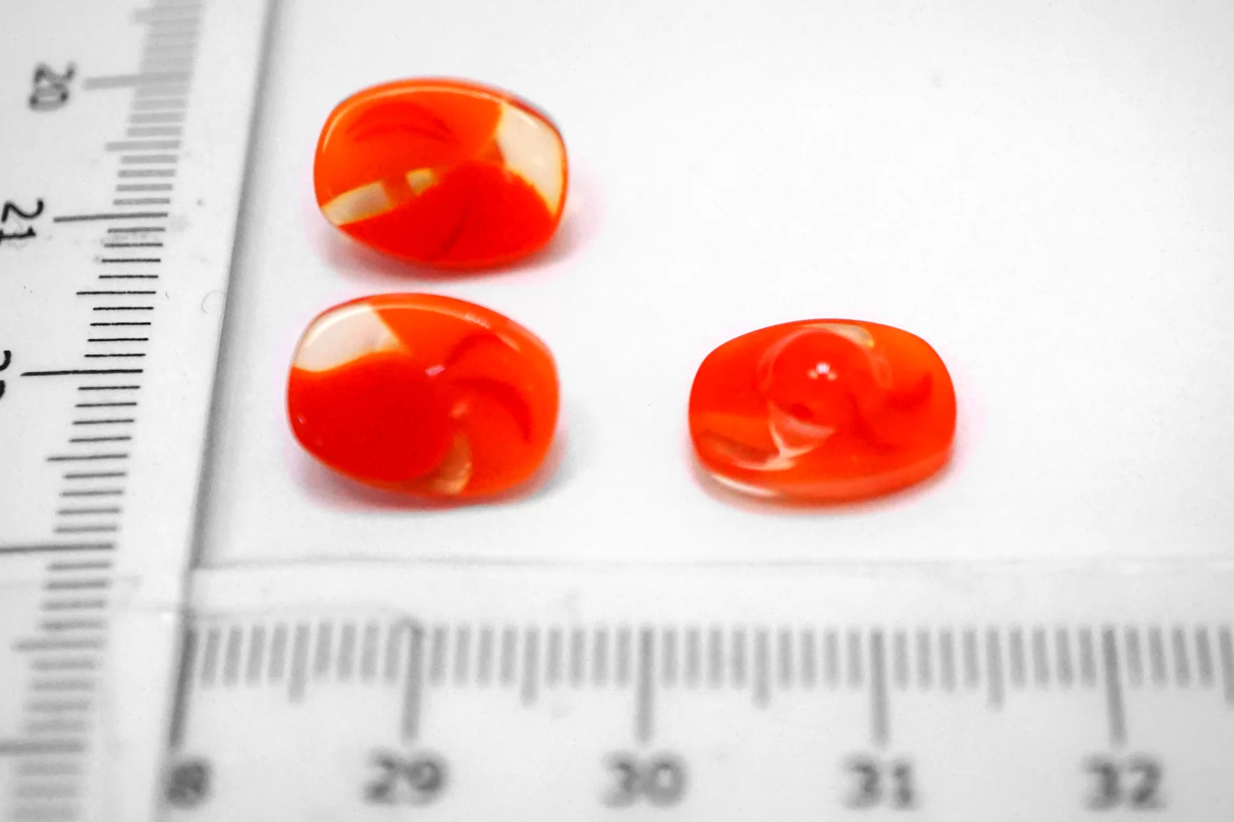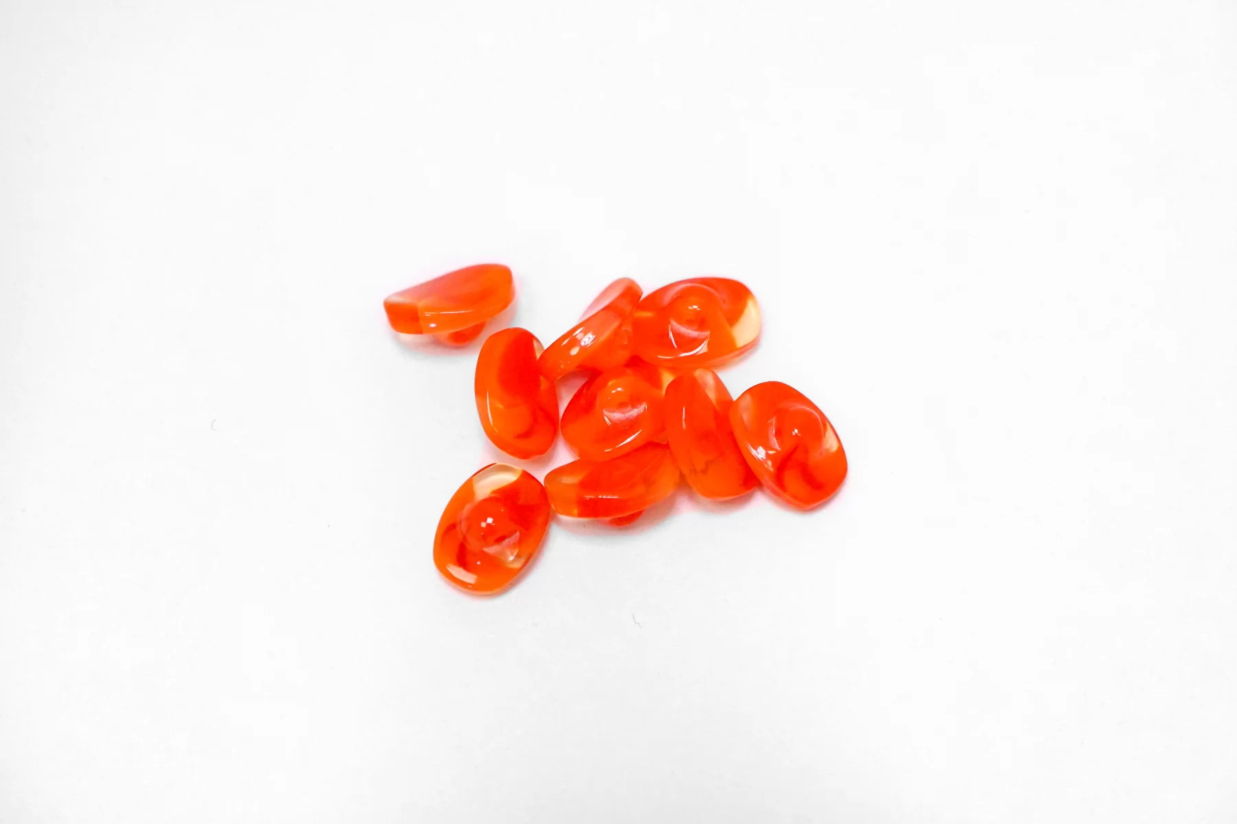 Пуговица пластик на ножке, овальная , кораллового цвета , размер 12 мм.