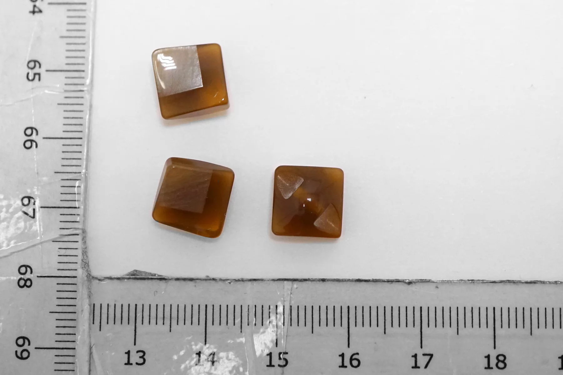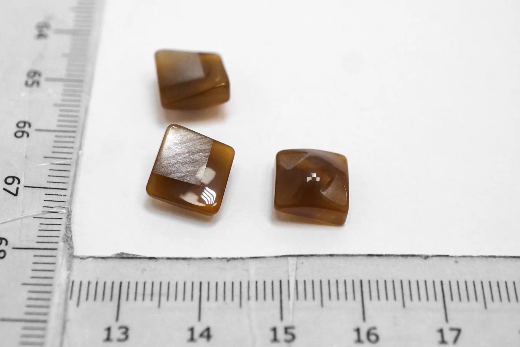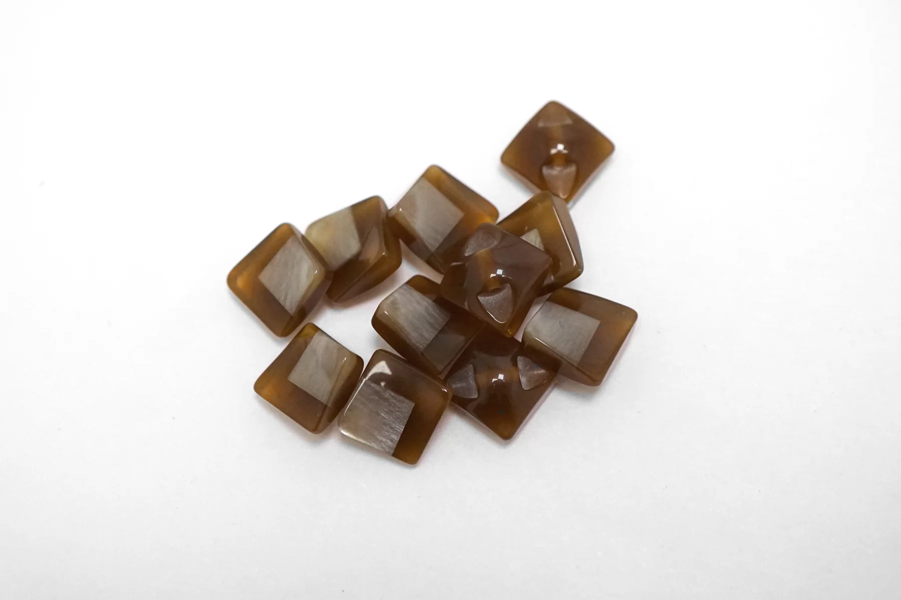 Пластиковая пуговица квадратная ,коричневого цвета на ножке с перламутровой вставкой. Размер 10 мм .
