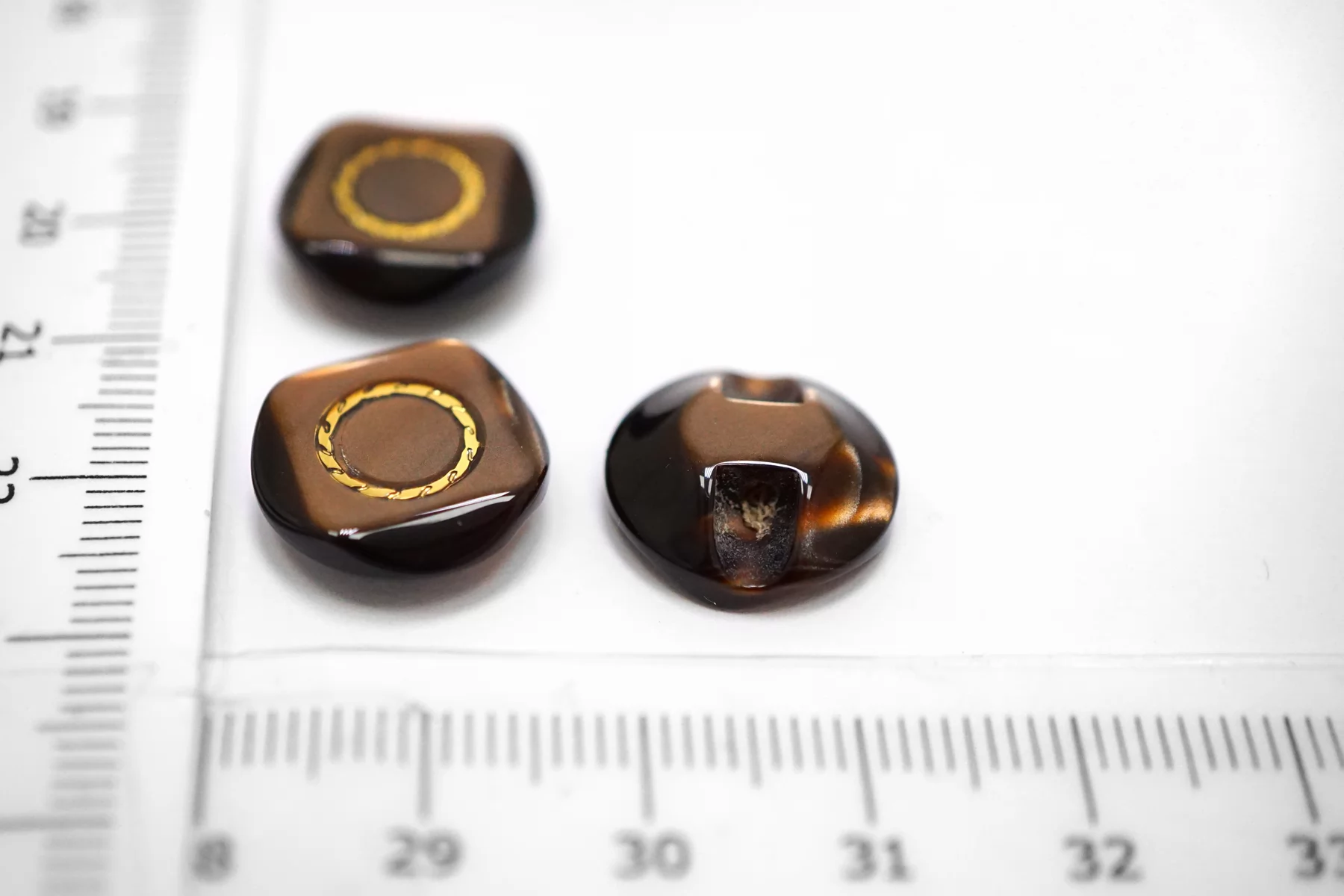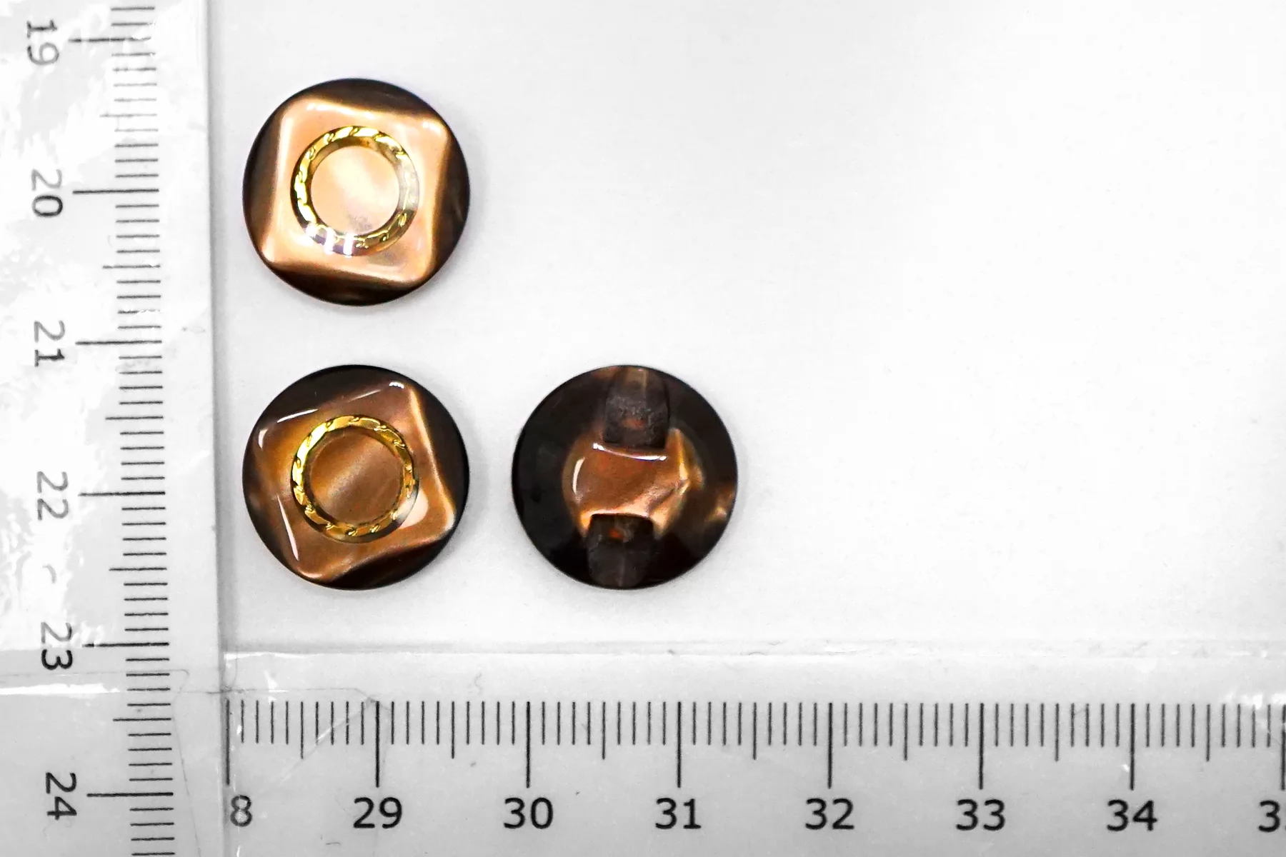 Пуговица пластиковая на ножке Коричневая с золотой вставкой 15 мм (S-3) 26112535