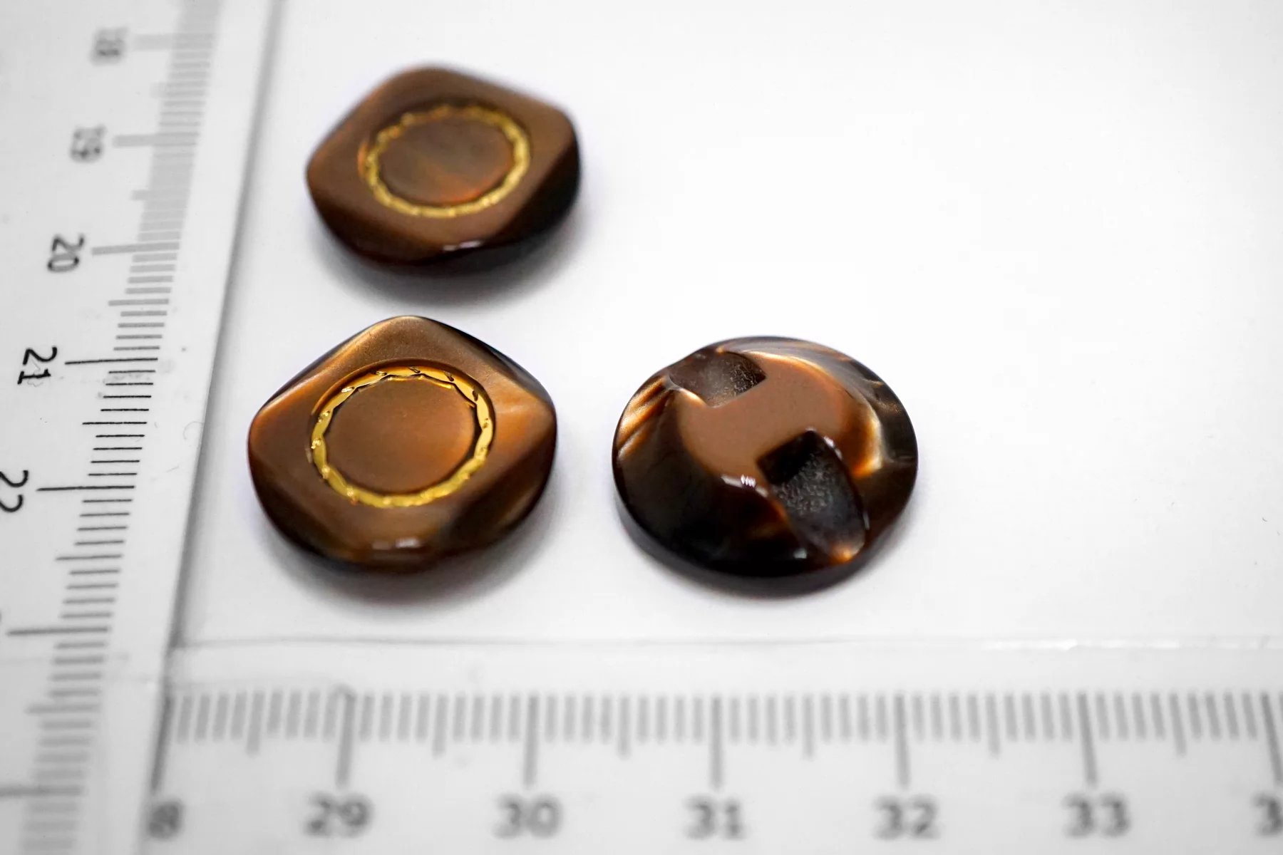 Пуговица пластиковая на ножке Коричневая с золотой вставкой 18 мм (S-3) 26112534