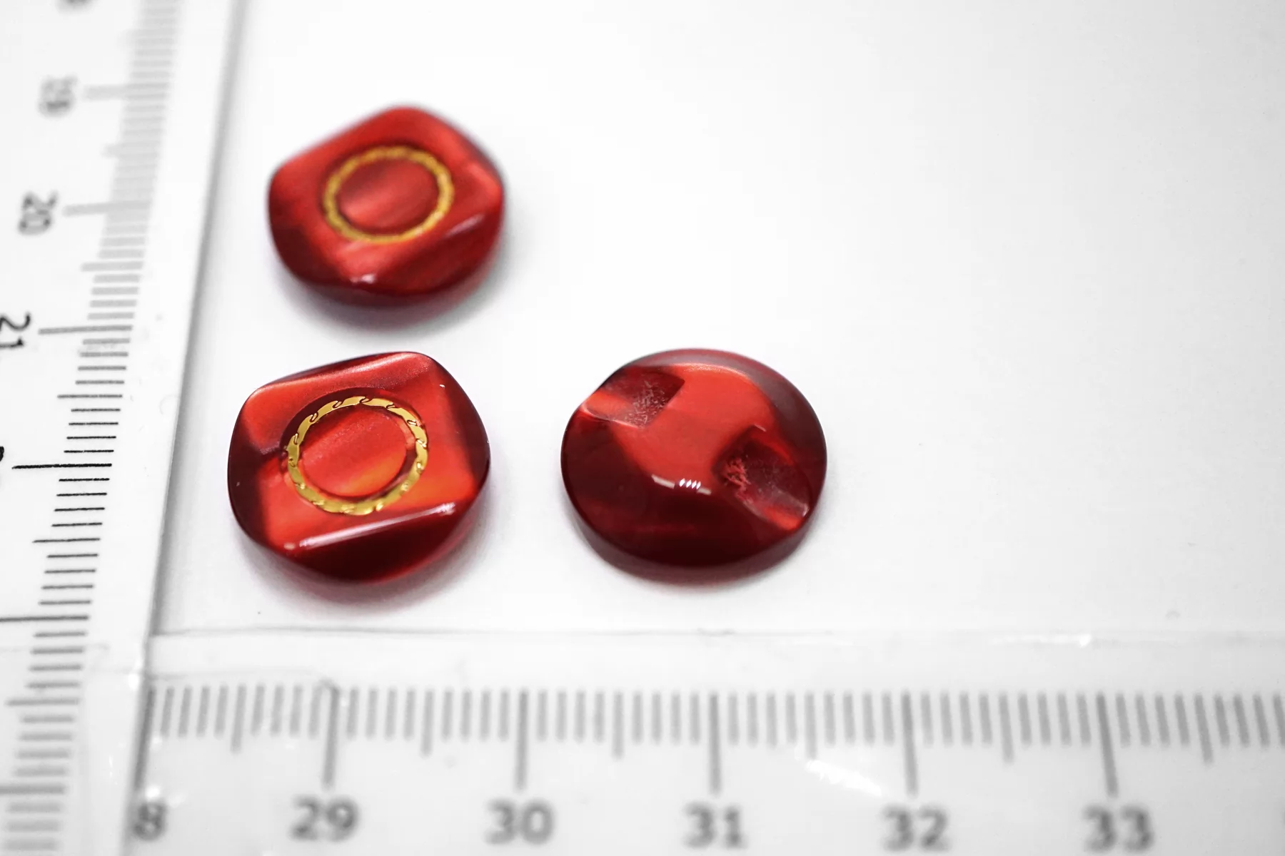 Пуговица пластиковая на ножке Красная с золотой вставкой 15 мм (S-3) 26112532