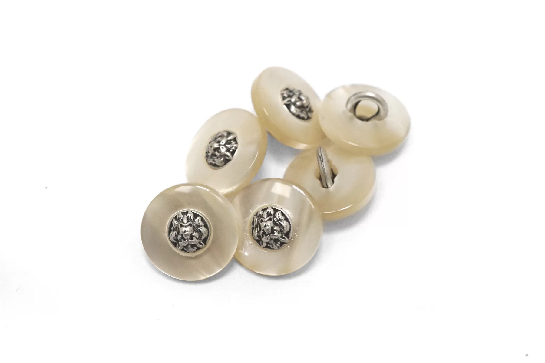 Пуговица пластиковая на ножке Молочная с серебряной вставкой 15 мм (К-3) 27112505