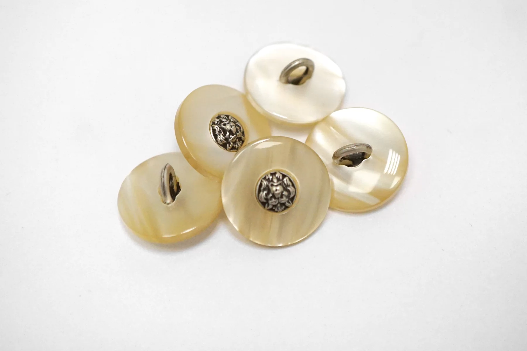 Пуговица пластик на металлической ножке, перламутровая , молочного цвета с серебряной вставкой из металла , размер 18 мм.