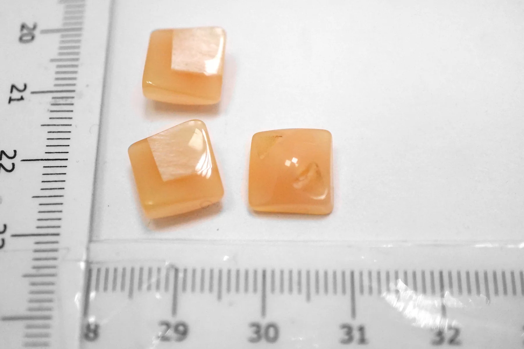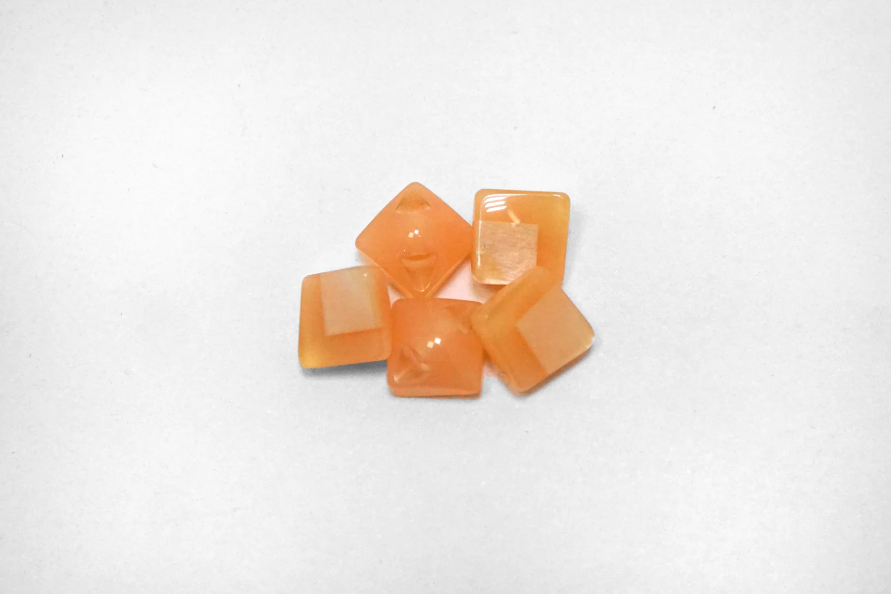 Пластиковая пуговица квадратная , персикового цвета на ножке с перламутровой вставкой . Размер 10 мм .