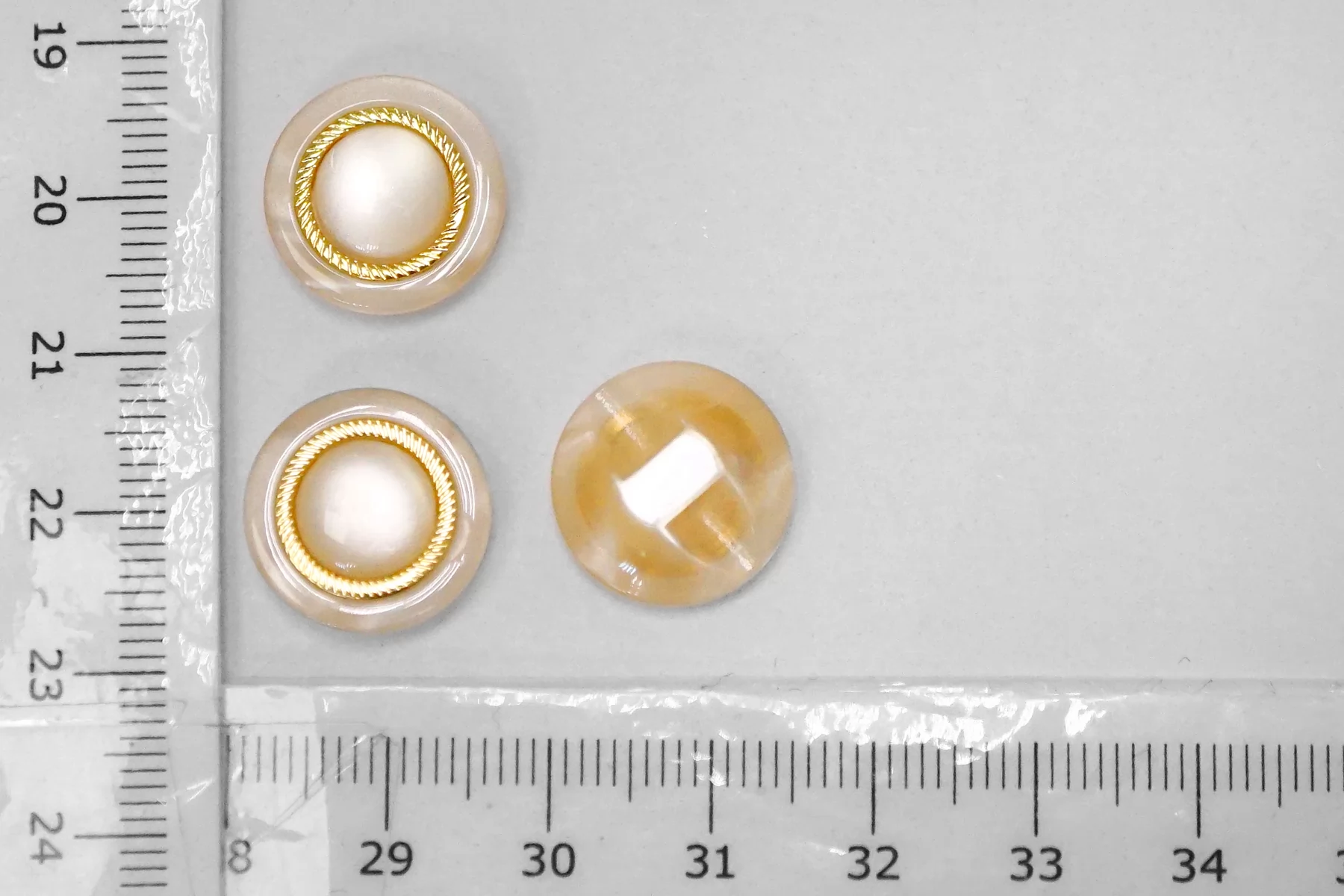 Пуговица пластиковая на ножке Персиковая с золотой вставкой 15 мм (S-3) 26112545