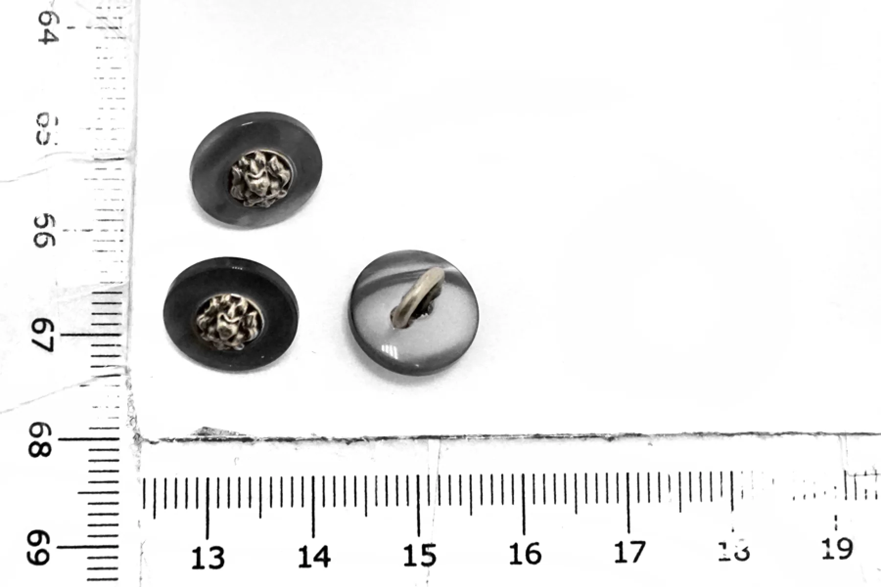 Пуговица пластиковая на ножке Серая с серебряной вставкой 12 мм (К-3) 27112502