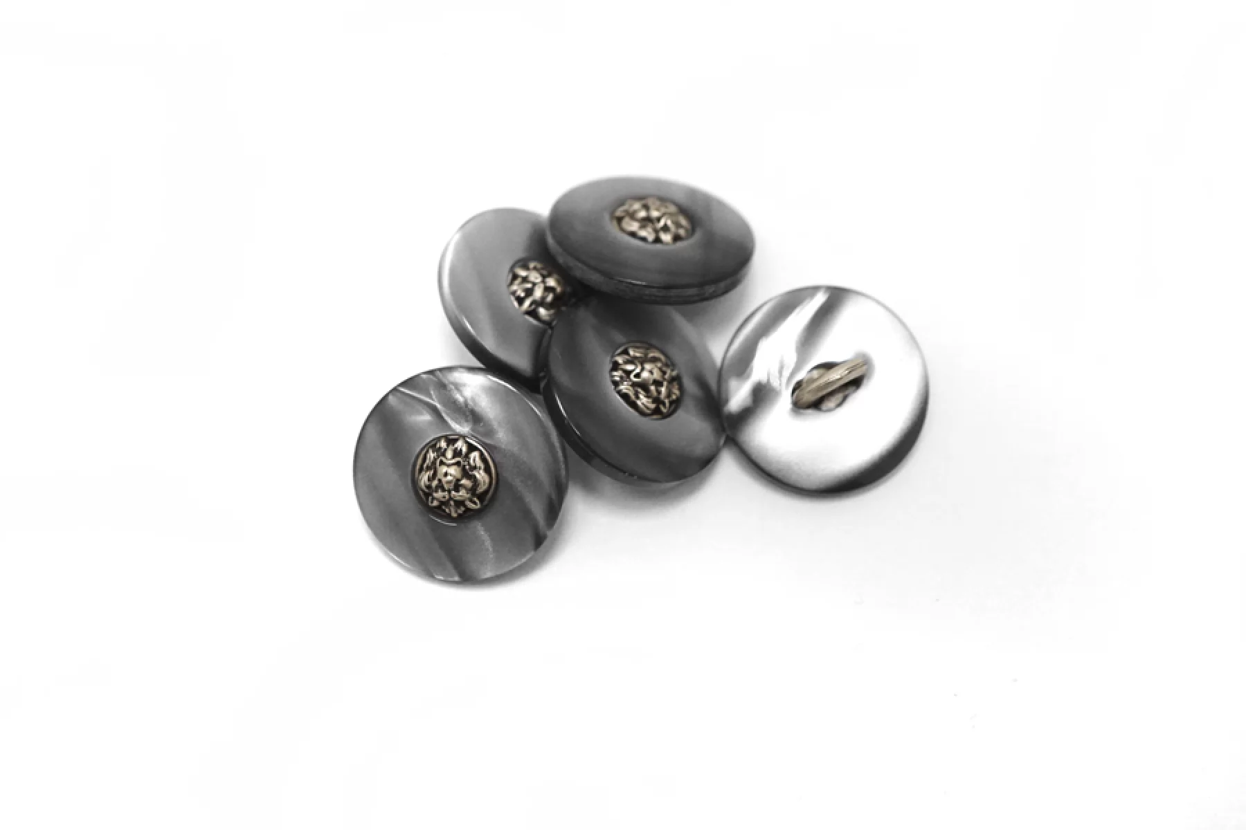 Пуговица пластик на металлической ножке, перламутровая ,серого цвета с серебряной вставкой из металла , размер 18 мм.
