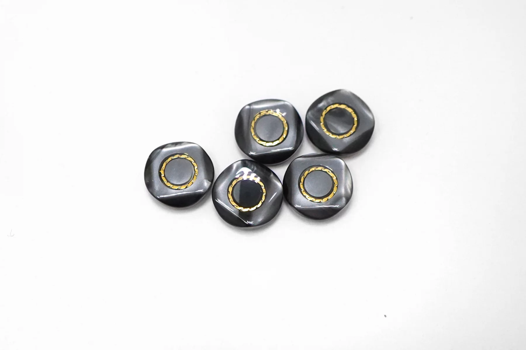 Пуговица пластиковая на ножке Серая с золотой вставкой 15 мм (S-3) 26112538