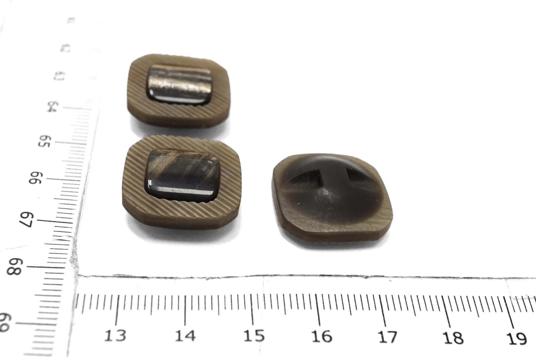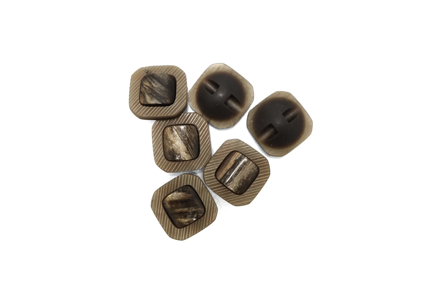 Пуговица пластиковая квадратная на ножке , светло-коричневого цвета с перламутровой вставкой , размер 20 мм.
