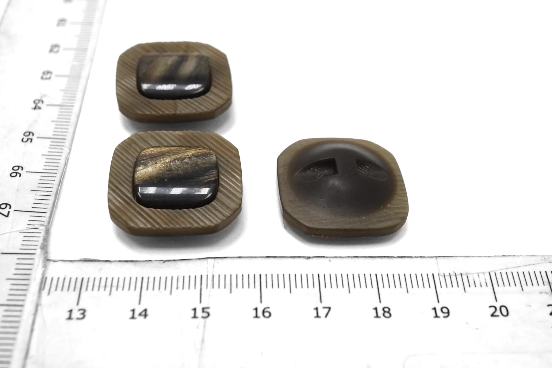 Пуговица пластиковая квадратная на ножке , светло-коричневого цвета с перламутровой вставкой , размер 25 мм.