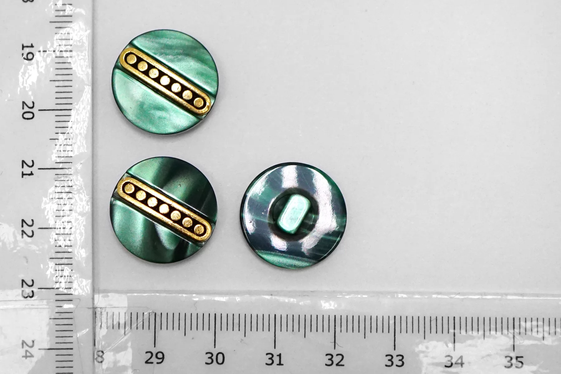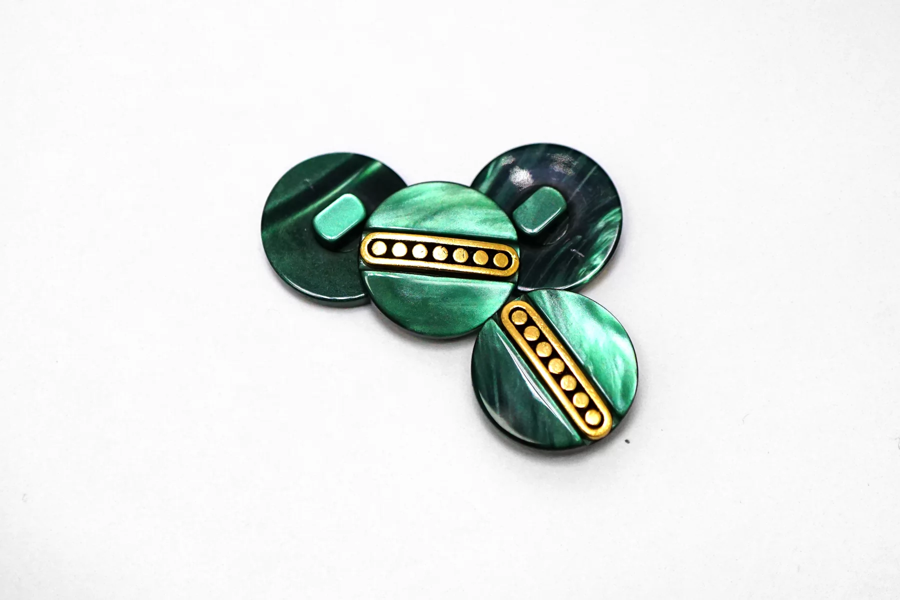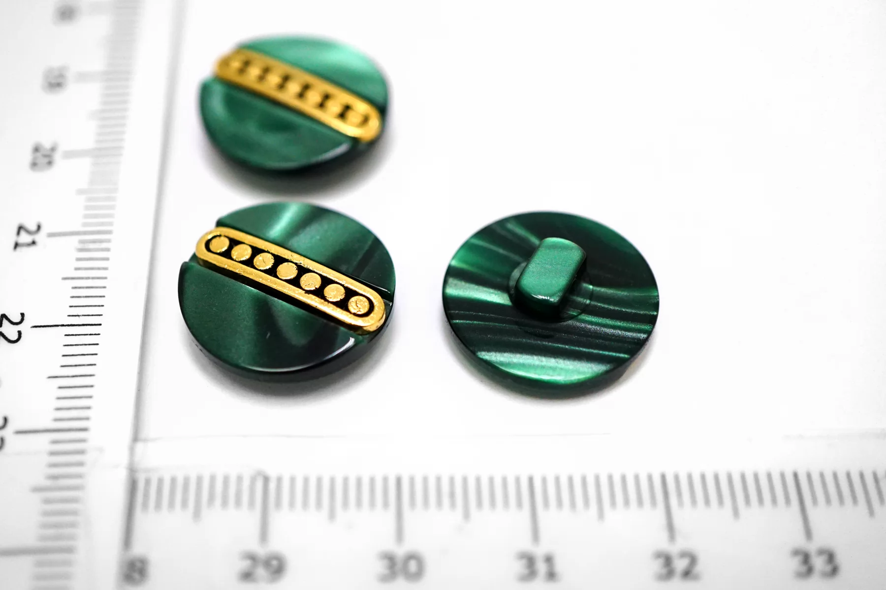 Пуговица пластиковая на ножке Зеленая с золотой вставкой 18 мм (S-3) 26112515