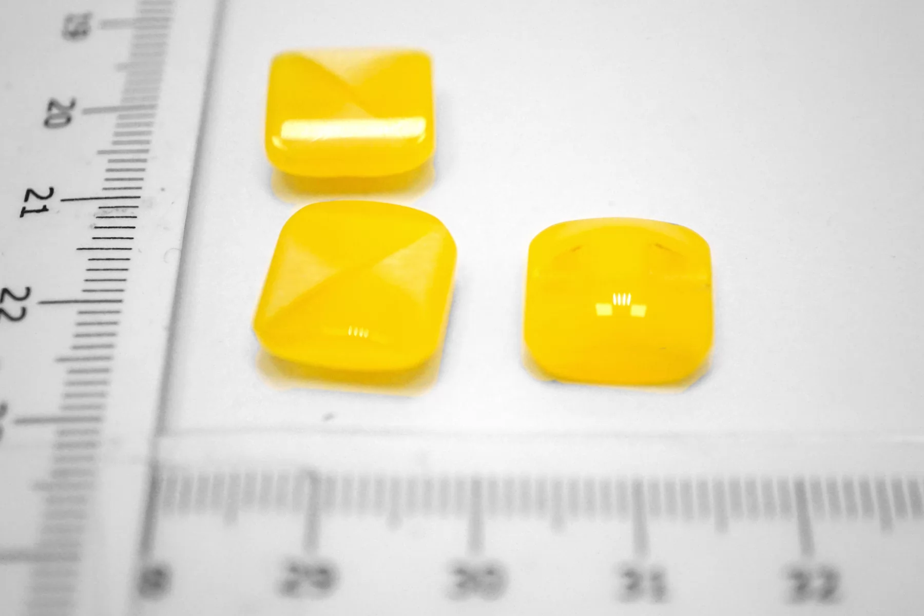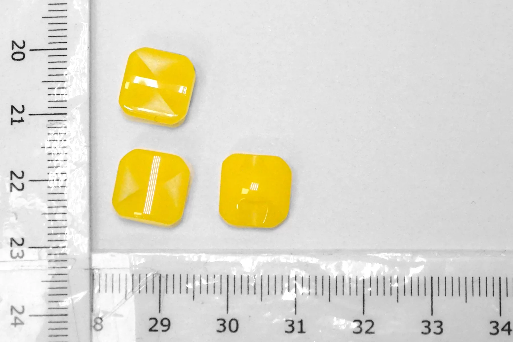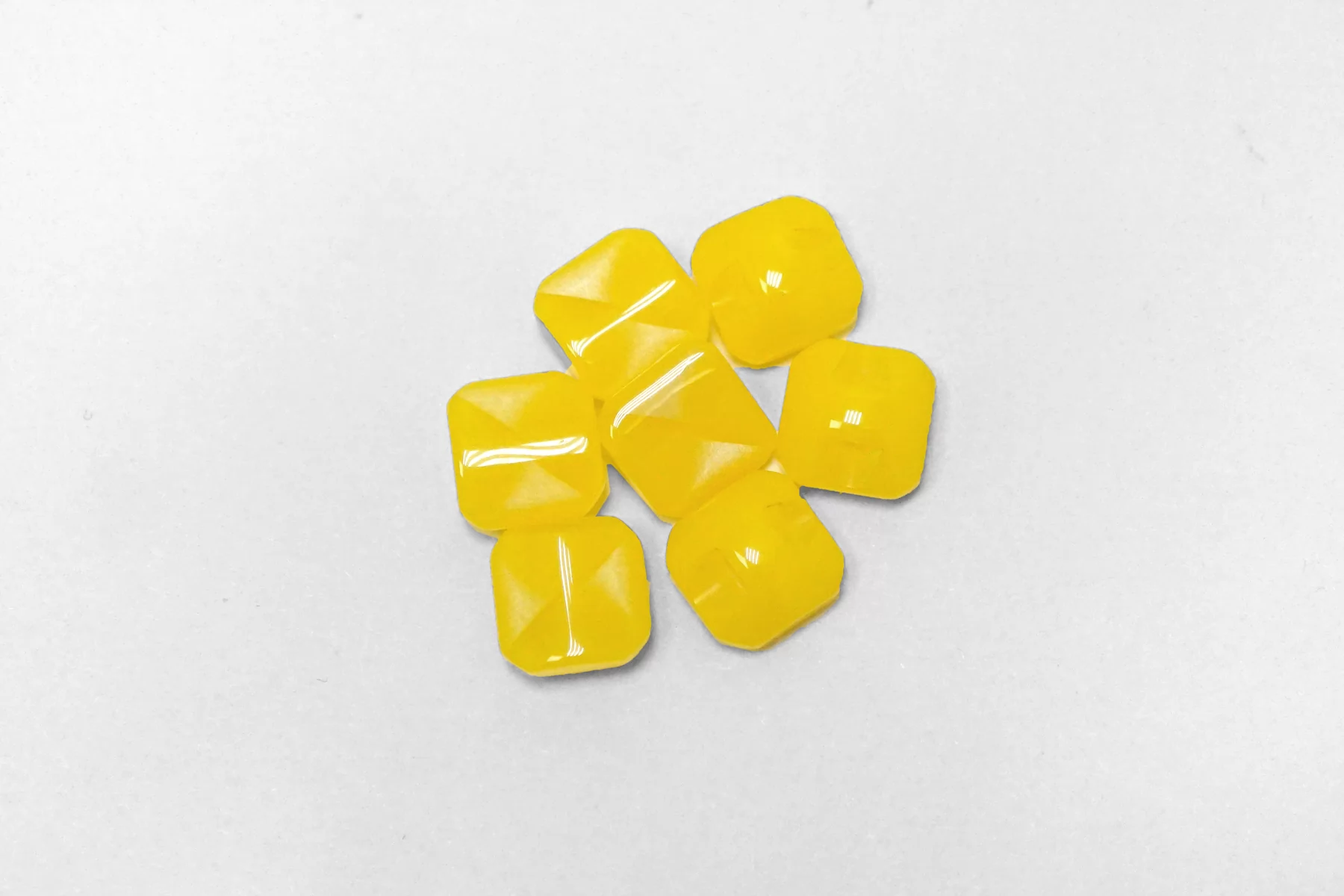 Пуговица пластик на ножке, квадратная , желтого цвета , размер 10 мм.