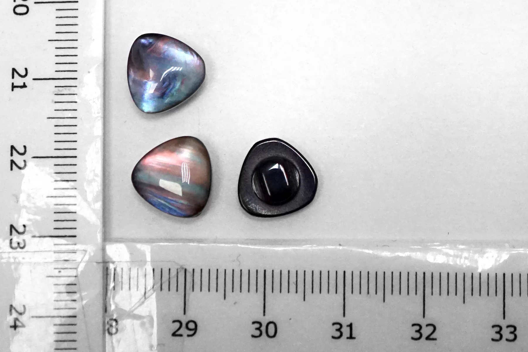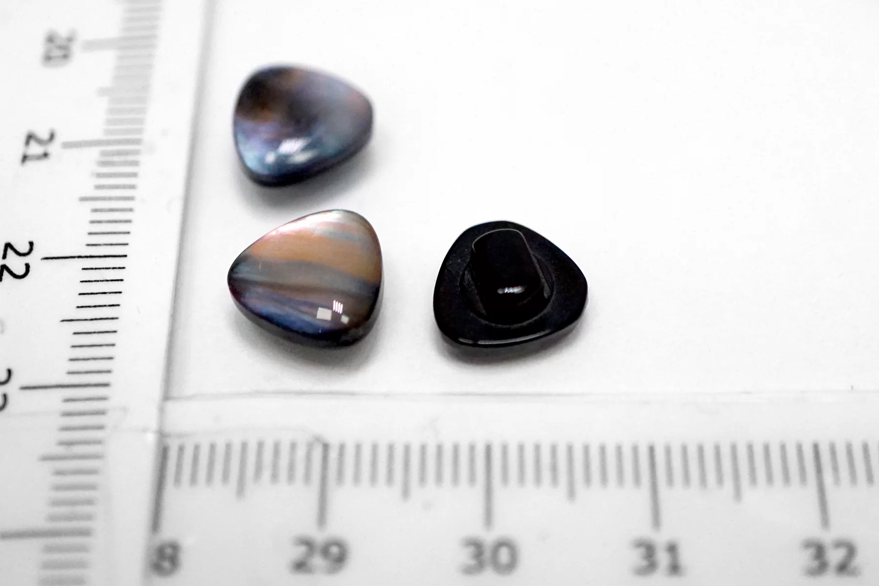 Пластиковая рубашечная пуговица на ножке , треугольной формы, розово-серого цвета с перламутровым переливом . Размер 11 мм .